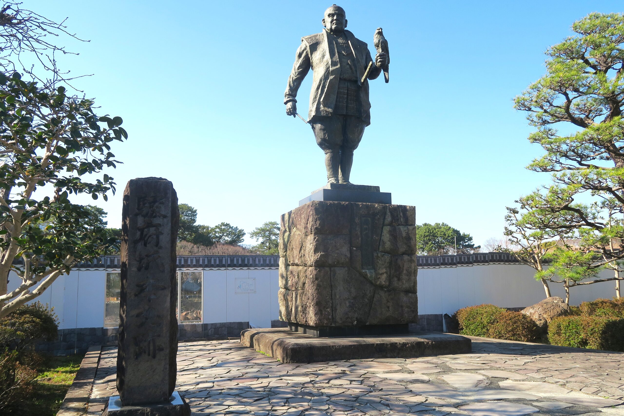 そして最後が慶長10年(1605)将軍職を秀忠に譲ると大御所となった家康は駿府城に戻り、慶長12年(1607)から駿府城を大改修。元和2年(1616)75歳で亡くなるまで大御所政治を行い在城しました。つまり駿府城の築城は天正期の家康の築城と慶長期の家康による大改修の大きく2回といえます。写真は鷹狩に興ずる駿府城本丸跡に立つ高さ6.5mの巨大な徳川家康公之像