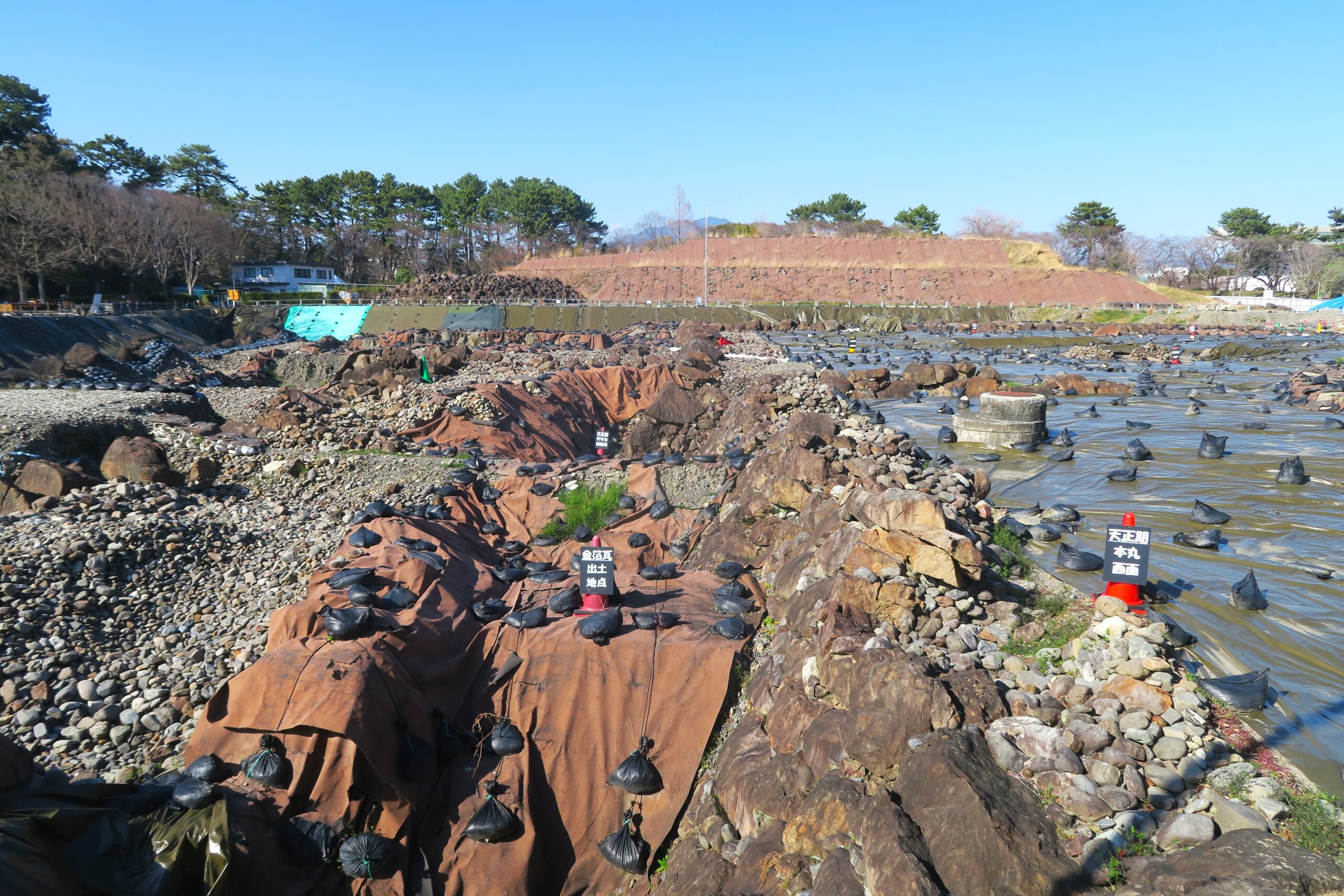 天正期の天守とはどのようなものだったのかは、石垣の構築技術や出土した大量の金箔瓦から、金箔瓦を使った総石垣の城は豊臣政権下の城であることが伺えます。つまり駿府城は家康の意思により単独で築かれたのではなく、秀吉が家康に命じて築かせた城であろうと考えられます。天正期の天守台があるにもかかわらず、大御所になった後、わざわざ秀吉時代の天守台を潰して新しいを天守台を建てることで天下人が代わったことを世にしめしたのでしょう。