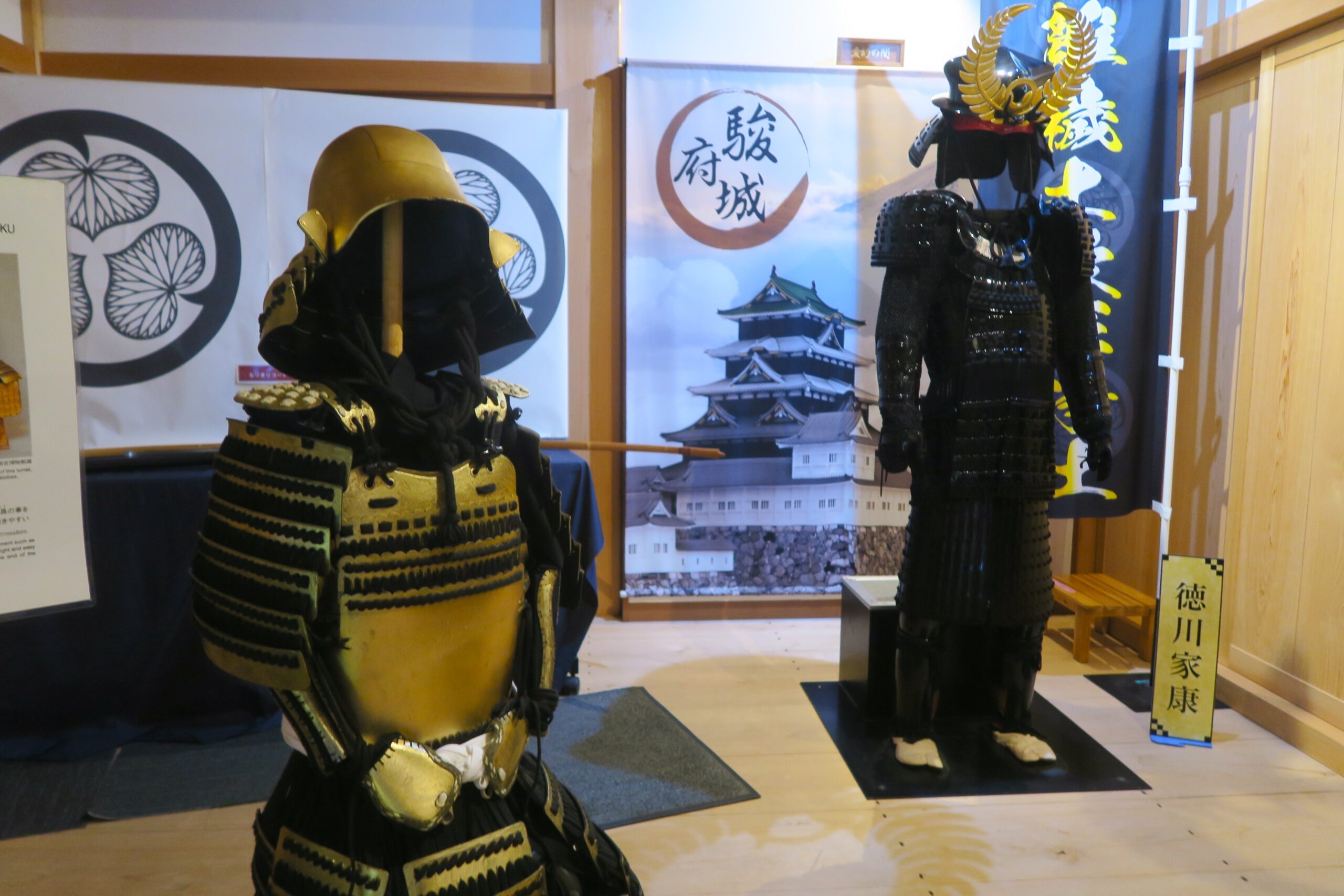 櫓内では厭離穢土欣求浄土の旗差しと桶狭間の戦いの頃着用したと伝承される金陀美具足とともに家康愛用のシダの前立兜を着用しての記念撮影ができます。