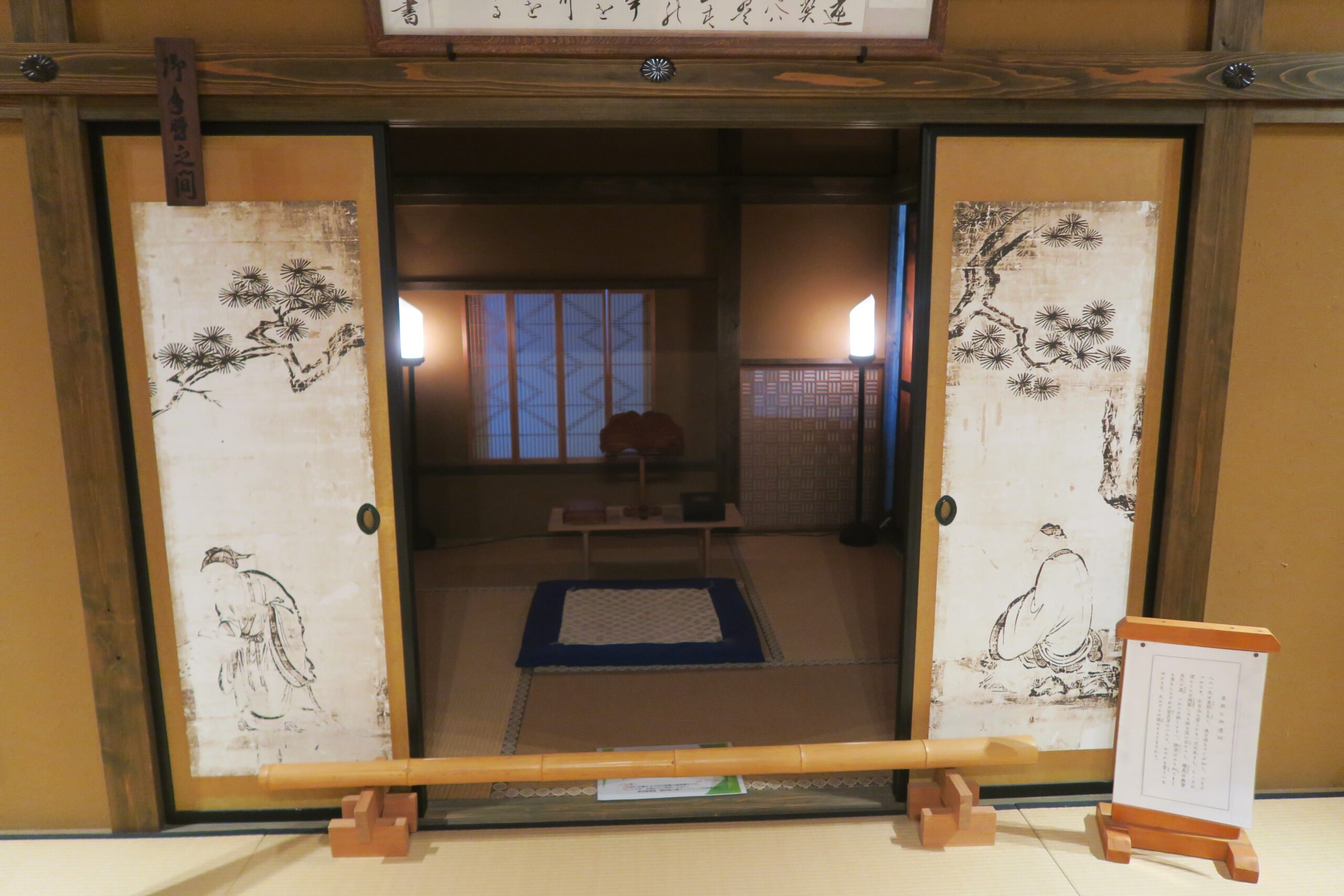 竹千代手習いの間(原寸復元)は家康公(幼名竹千代)の勉強部屋です。天文18年(1549)から12年間、8才から19才の時に今川義元の人質として駿府で生活していました。家康は人質の間、臨済時のこの部屋で今川家軍師の臨済寺住職太原雪斎和尚から学問を学んだと伝えられています。