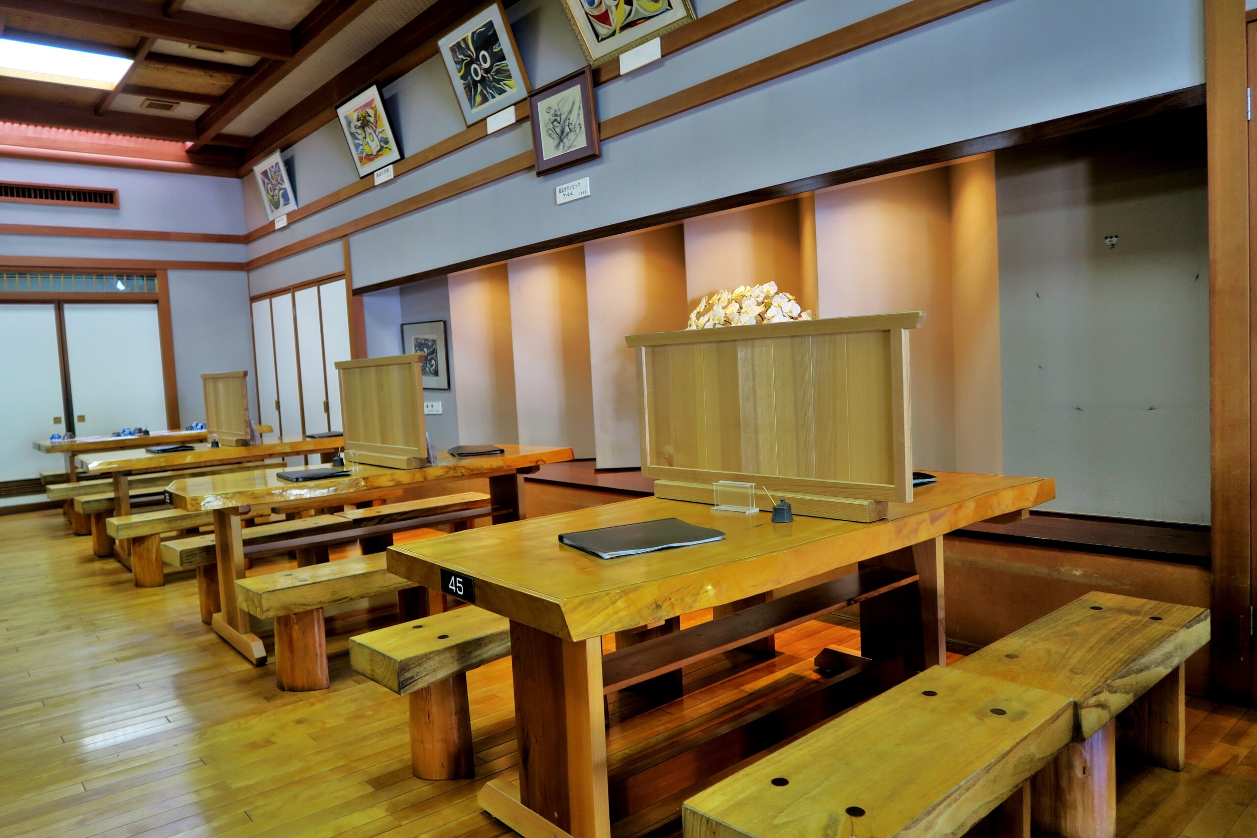 大広間には長テーブルが所狭しと置かれ、お客さんがひしめくあう観光地の大型店舗ですが、お店自体はとてもきれいです。