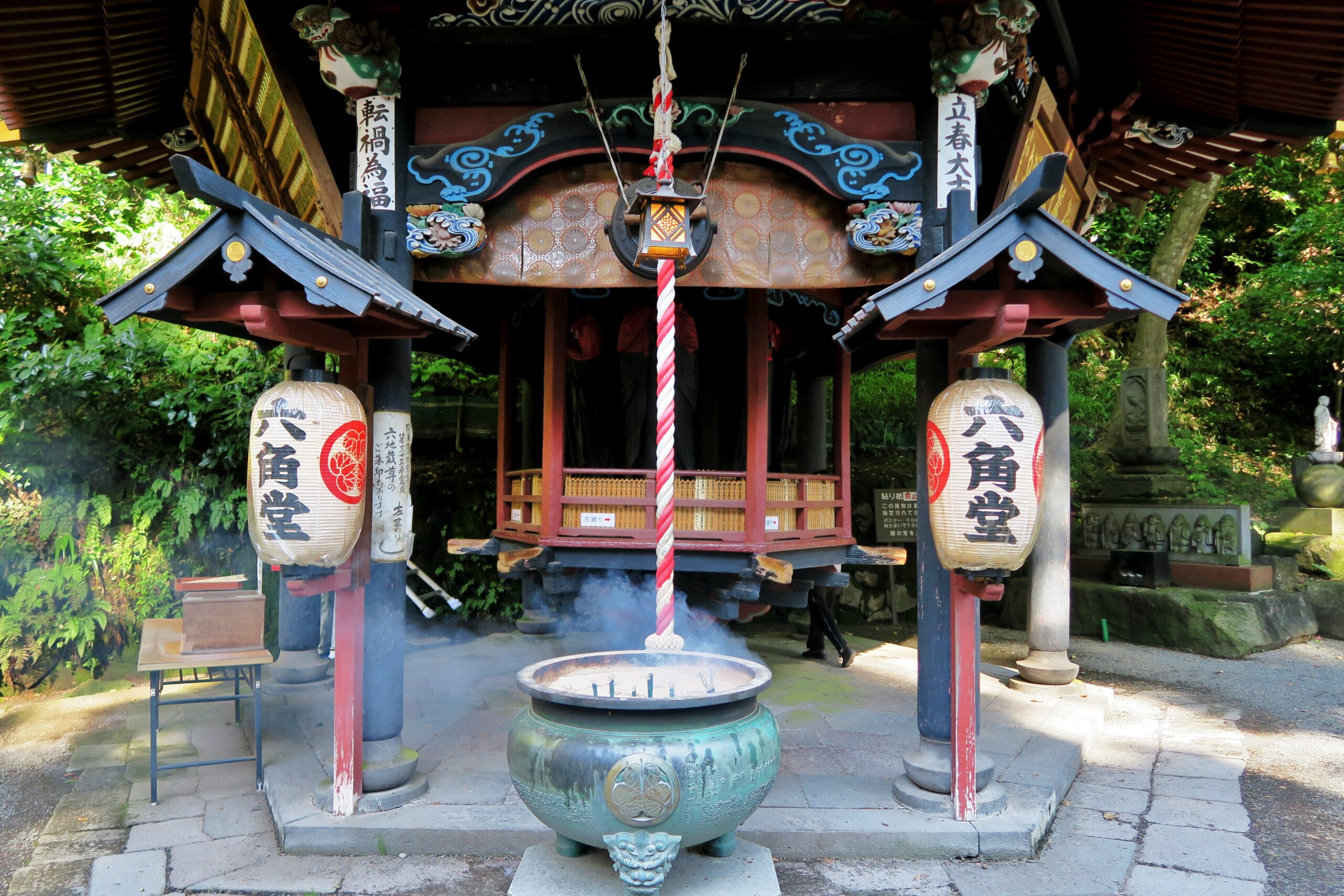 我が国の地蔵尊信仰の代表的建造物である塔のように屋根の反りが美しい「六角堂」は、元禄年間に建立された銅版瓦棒葺の造りで「六地蔵尊」を安置しています。六地蔵尊とは地獄道、餓鬼道、畜生道、修羅道、人間界(放光王地蔵尊)、天人界の六道を守る地蔵尊で六道輪廻の相を表しています。二階には大日如来をお祀りしています。