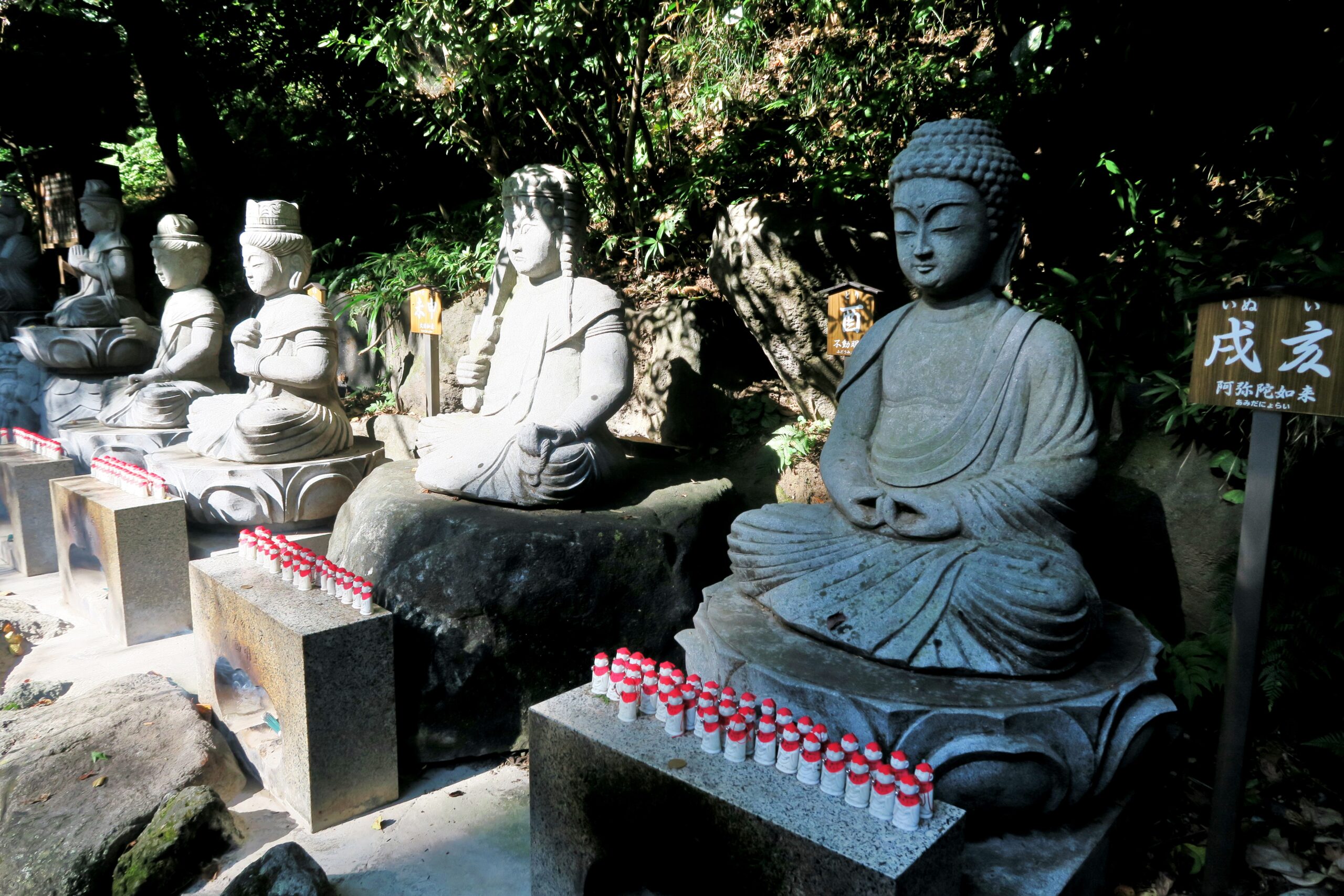 六角堂の右手には十二支の守り本尊が並んでいます。れ十二の方位には、そこを守る8体の守護仏がいるとされ、その方位と同じ生まれ年(干支)の守護仏になるとされている守り本尊は、古来より開運・厄除けの守護仏として人々に親しまれています。