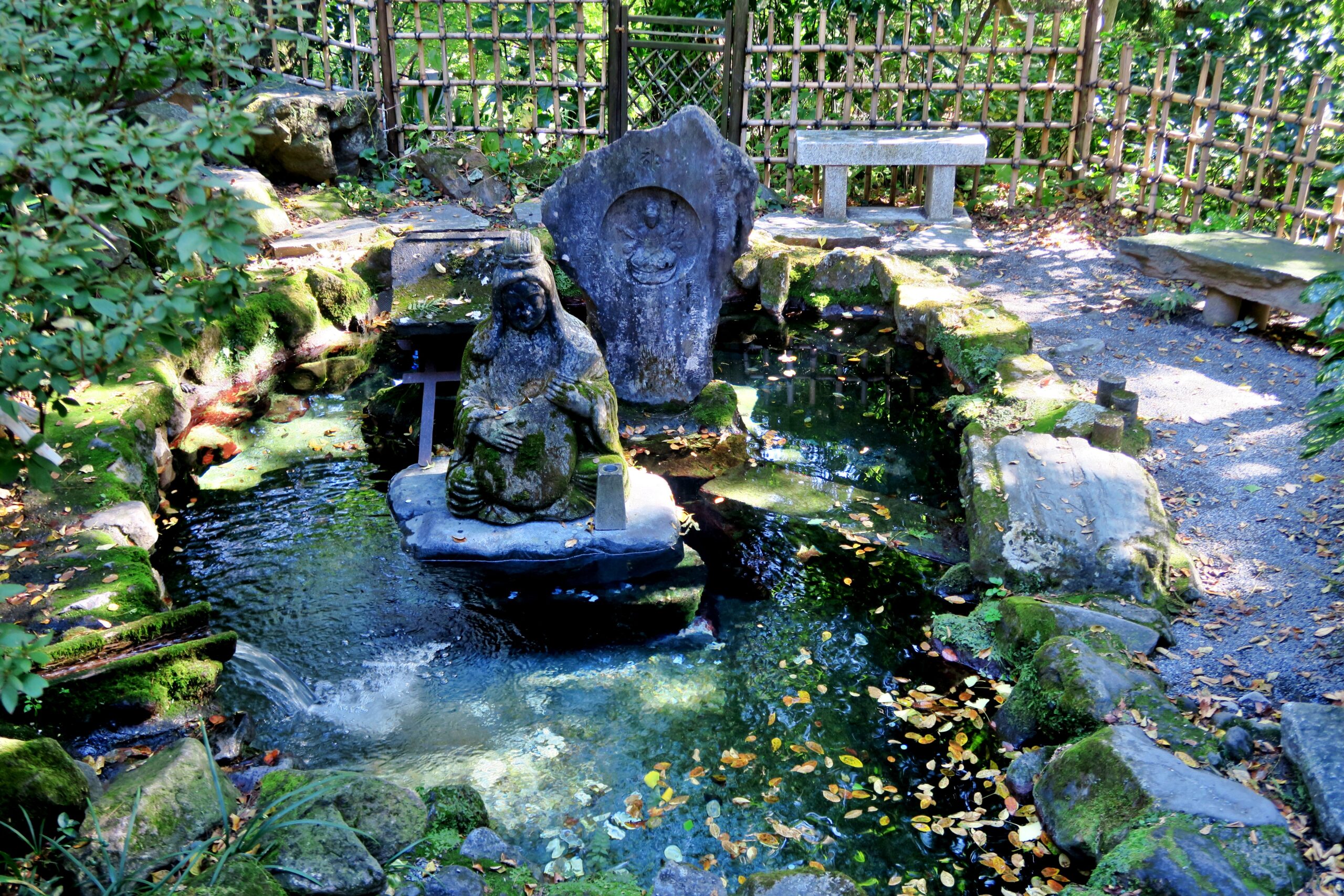 水の五徳が由来の「五徳山」の山号を持つ水澤観世音。その境内に湧き出る霊泉の中央には、金運アップの「龍王辨財天」が安置されています。