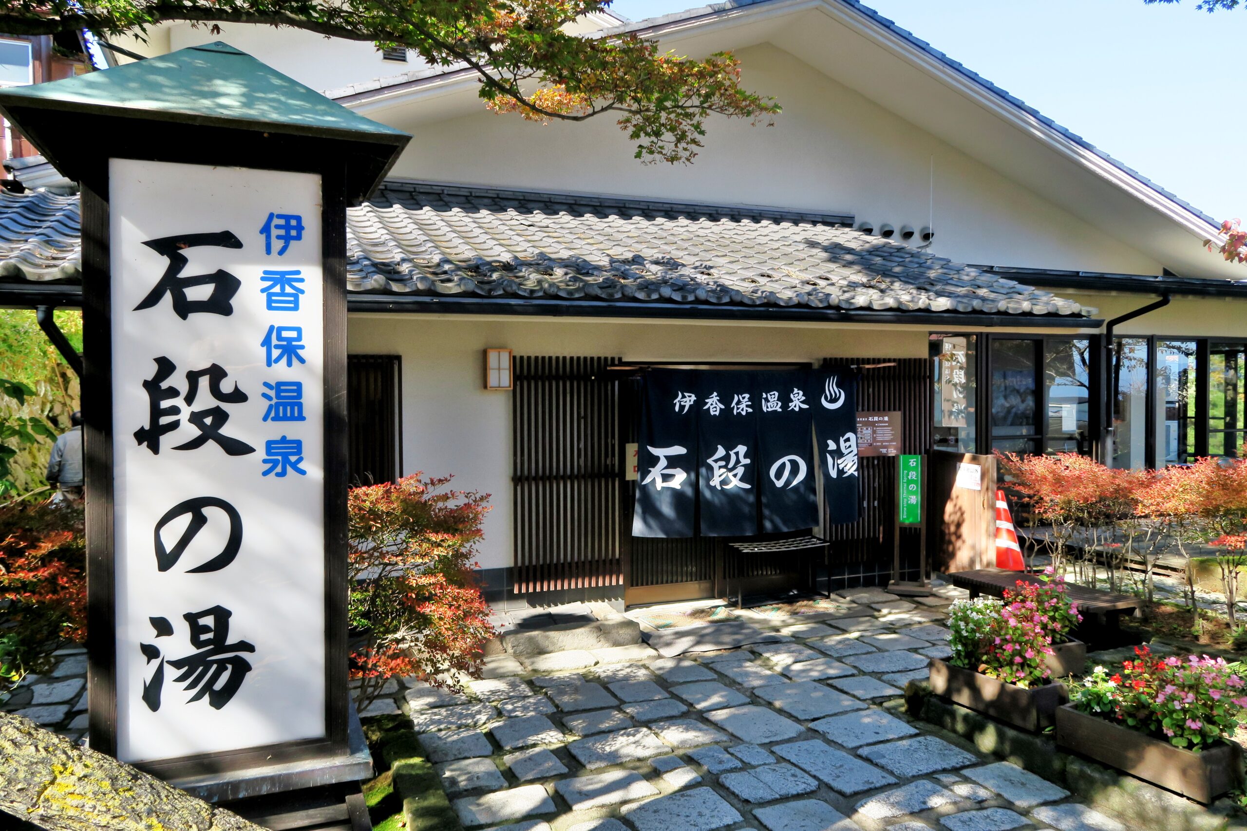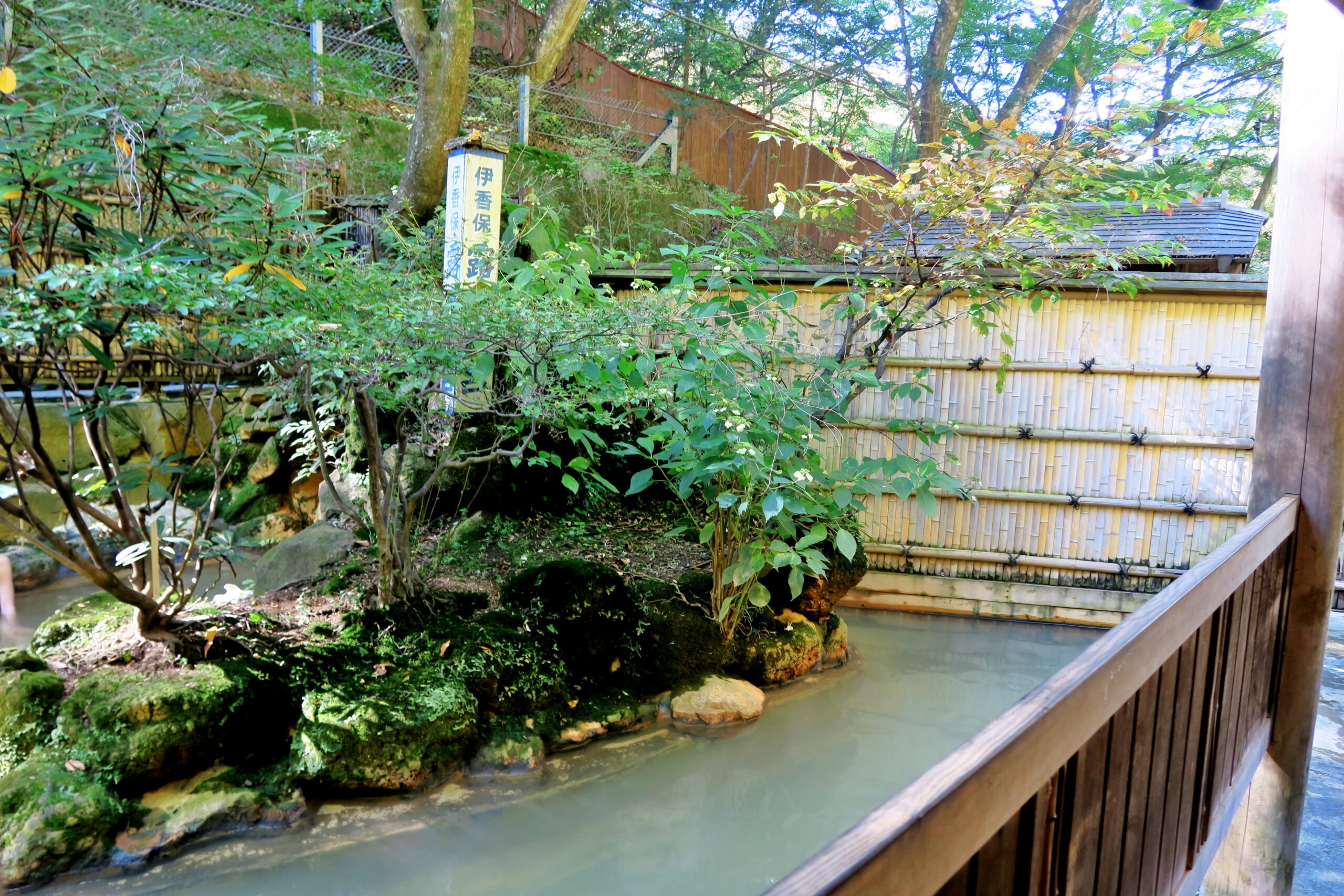 石段街最上段の伊香保神社から徒歩約10分、河鹿橋からは徒歩2分にあり、第二号源泉のすぐ下にある露天風呂が「伊香保露天風呂」です。伊香保で最もフレッシュな温泉が堪能でき、森に囲まれた静かで開放的な佇まいが人気です。古湯の風情豊かな共同浴場で昔は混浴でしたが今は男女別です。※河鹿橋脇に無料駐車場有