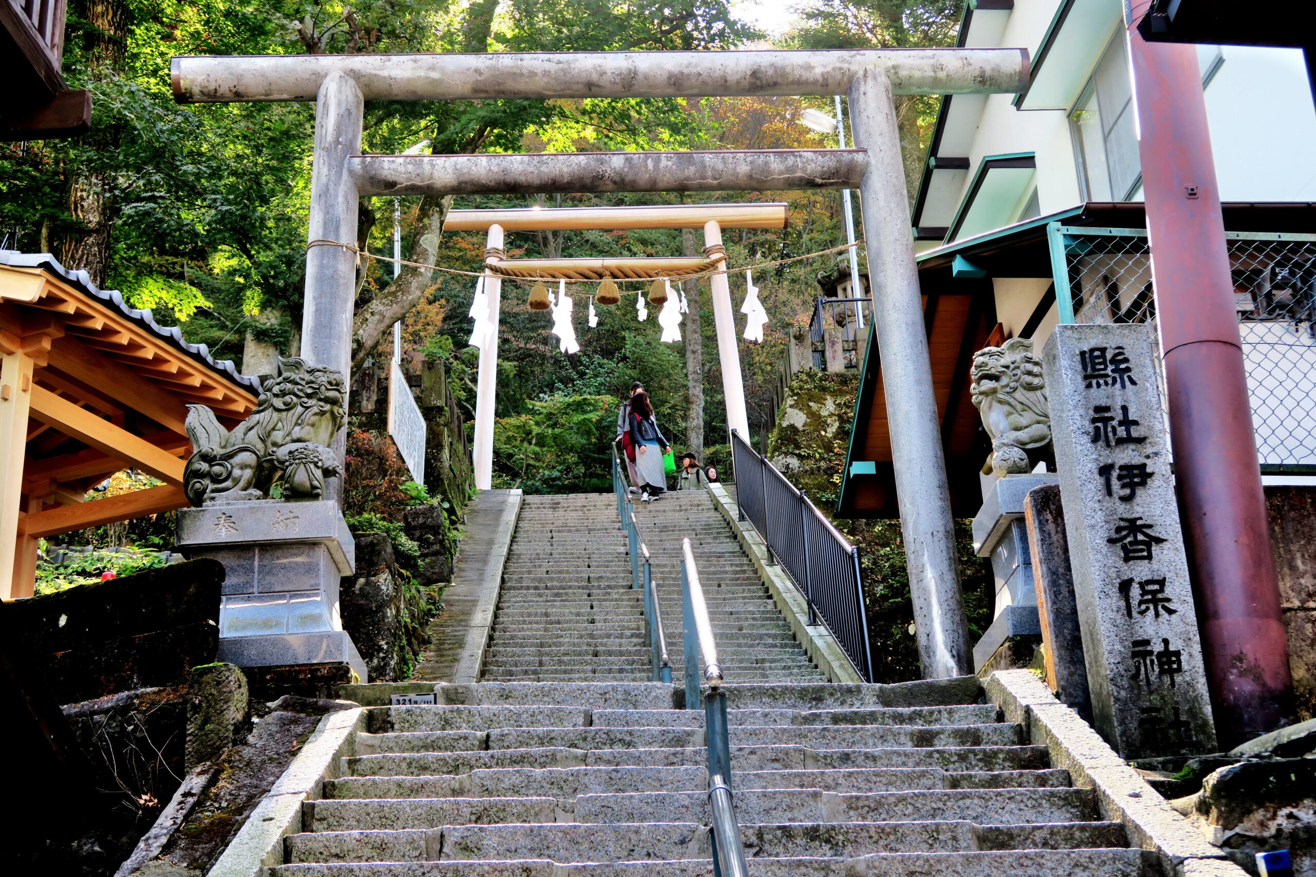 長さ300mの石段街の最上段にあるのが延喜式にも記された垂仁天皇の時代の開基と伝わる由緒ある古社「伊香保神社」です。もともとは榛名山に対する山岳信仰の社で、温泉・医療の神を祀ります。伊香保温泉が子宝の湯といわれることから縁結びの神でもあります。