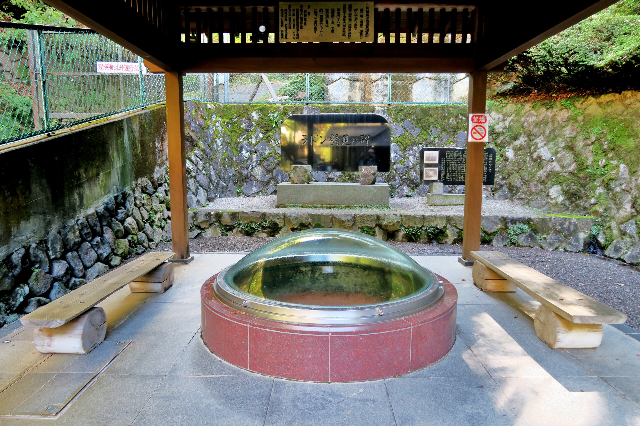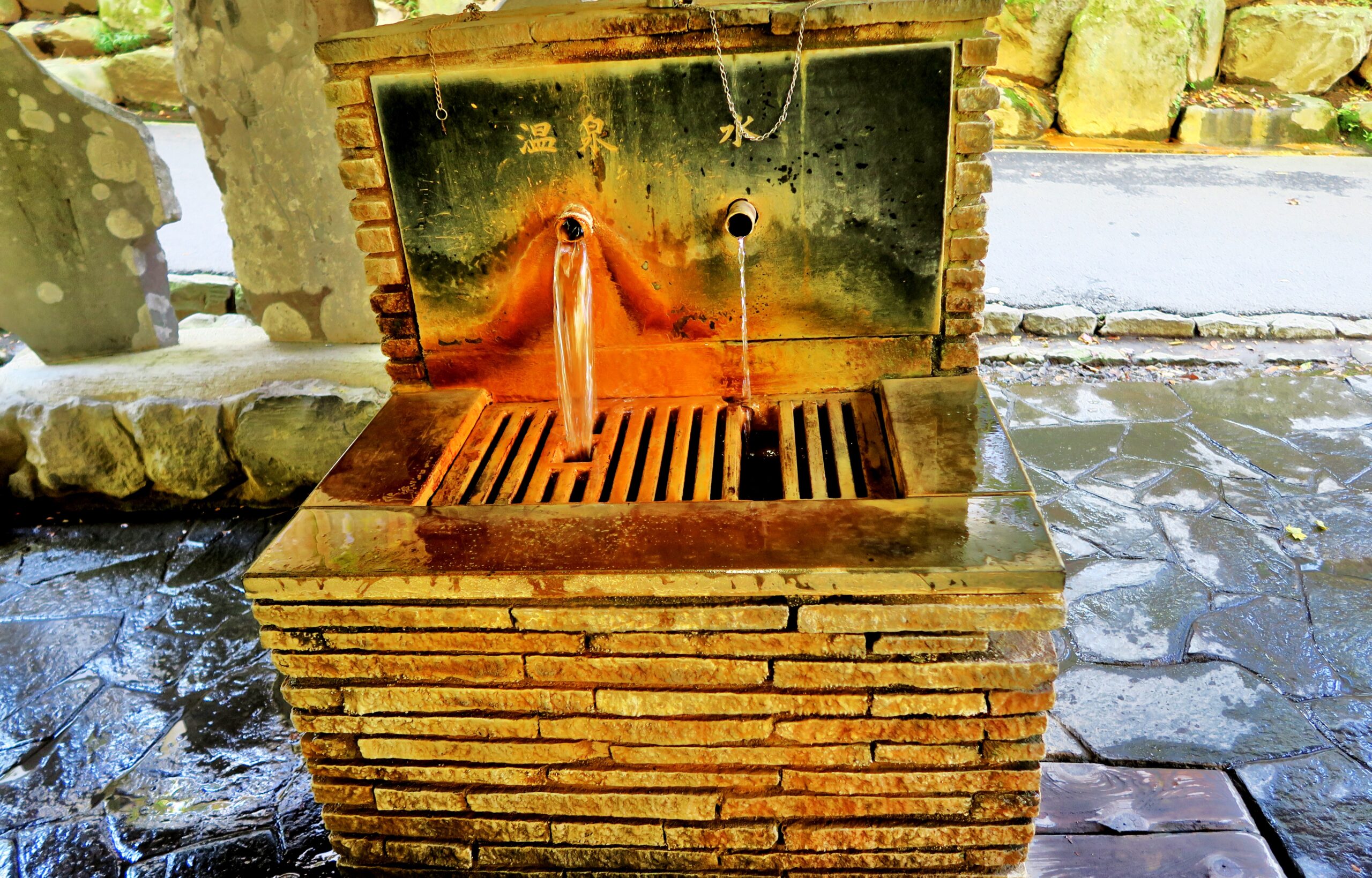 近くにある自噴する源泉湧出口や飲泉所も見どころです。黄金の湯と普通の水を飲み比べることができ、黄金の湯は飲むとその濃厚な鉄味には独特の苦みがあり、昔の休み明けの校庭の水飲み場を彷彿させます。