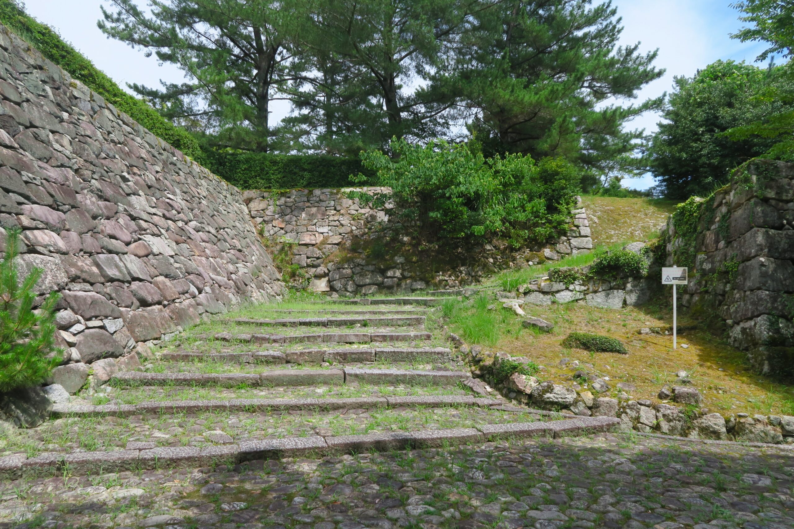 ほどなく大阪夏の陣で豊臣方が滅亡したことで対大阪への備えであった城は存在意義を失い、城普請は中止され天守は再建されませんでした。高虎は大阪の陣が終わった後、交通の便利がいい津城を本城としましたが、一国一城令で上野城は「伊賀の城」として存続が認められ、支城として城代家老(弟の藤堂高清)が執政することとなり幕末まで続きました。木立を抜けて坂道を上りきると、広々とした本丸広場に出ます。