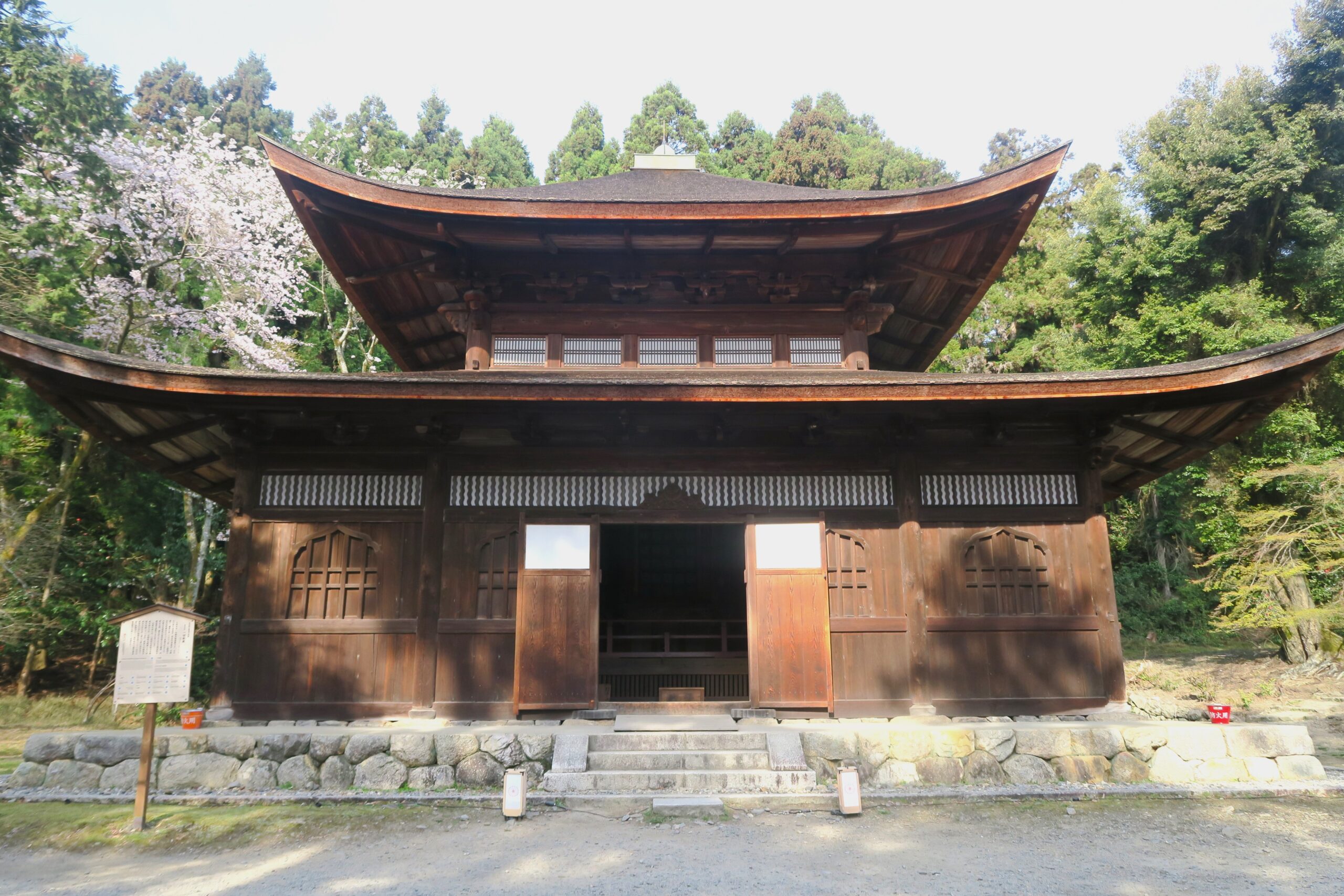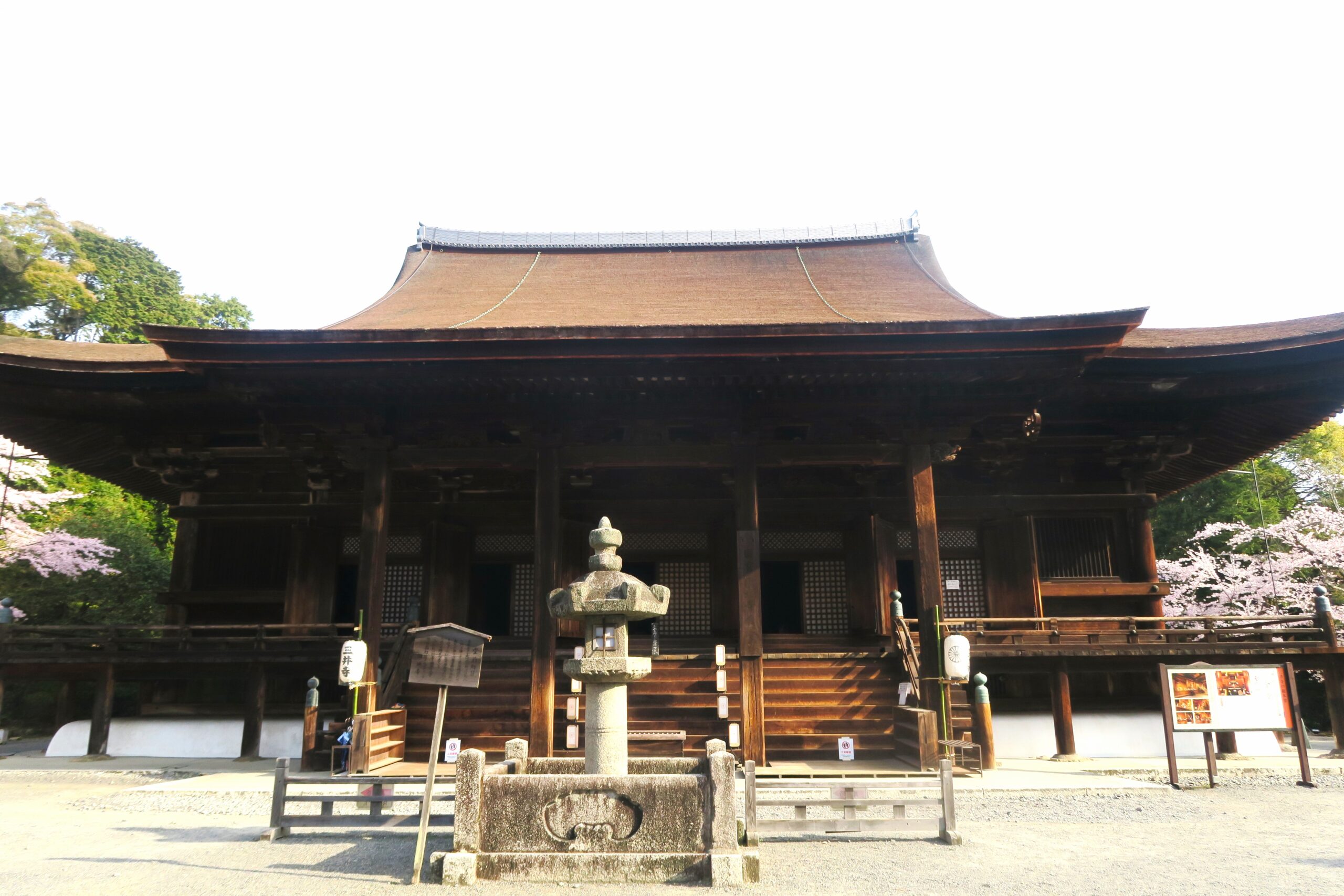 創建当時の金堂は、織田信長の焼き討ちの後、豊臣秀吉が比叡山延暦寺西塔の釈迦堂として移築してしまったため、現在の建築は慶長4年(1599)秀吉の北政所が再建したものです。桃山時代を代表する風格ある名建築物に圧倒されます。