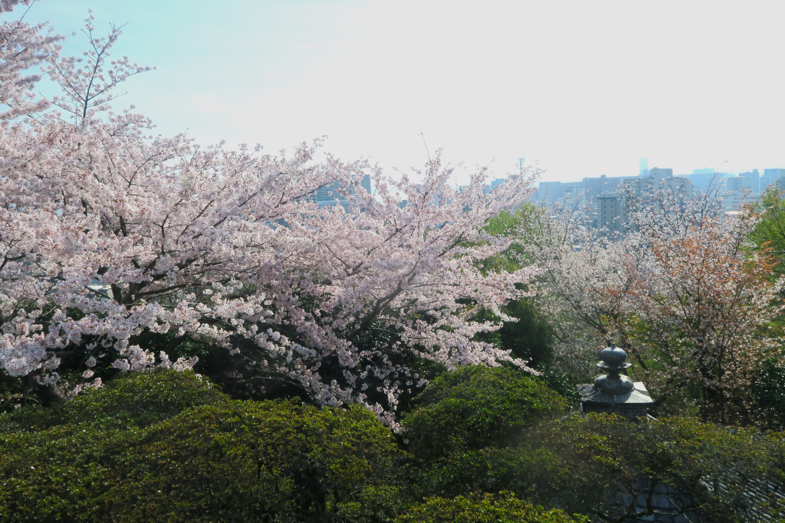 観音堂のあるところから一段上に上がったところにある展望広場からは、観音堂、百体観音堂、観月舞台等が並ぶ札所伽藍が一望でき、さらにその奥には大津市街そして琵琶湖を望むことができます。