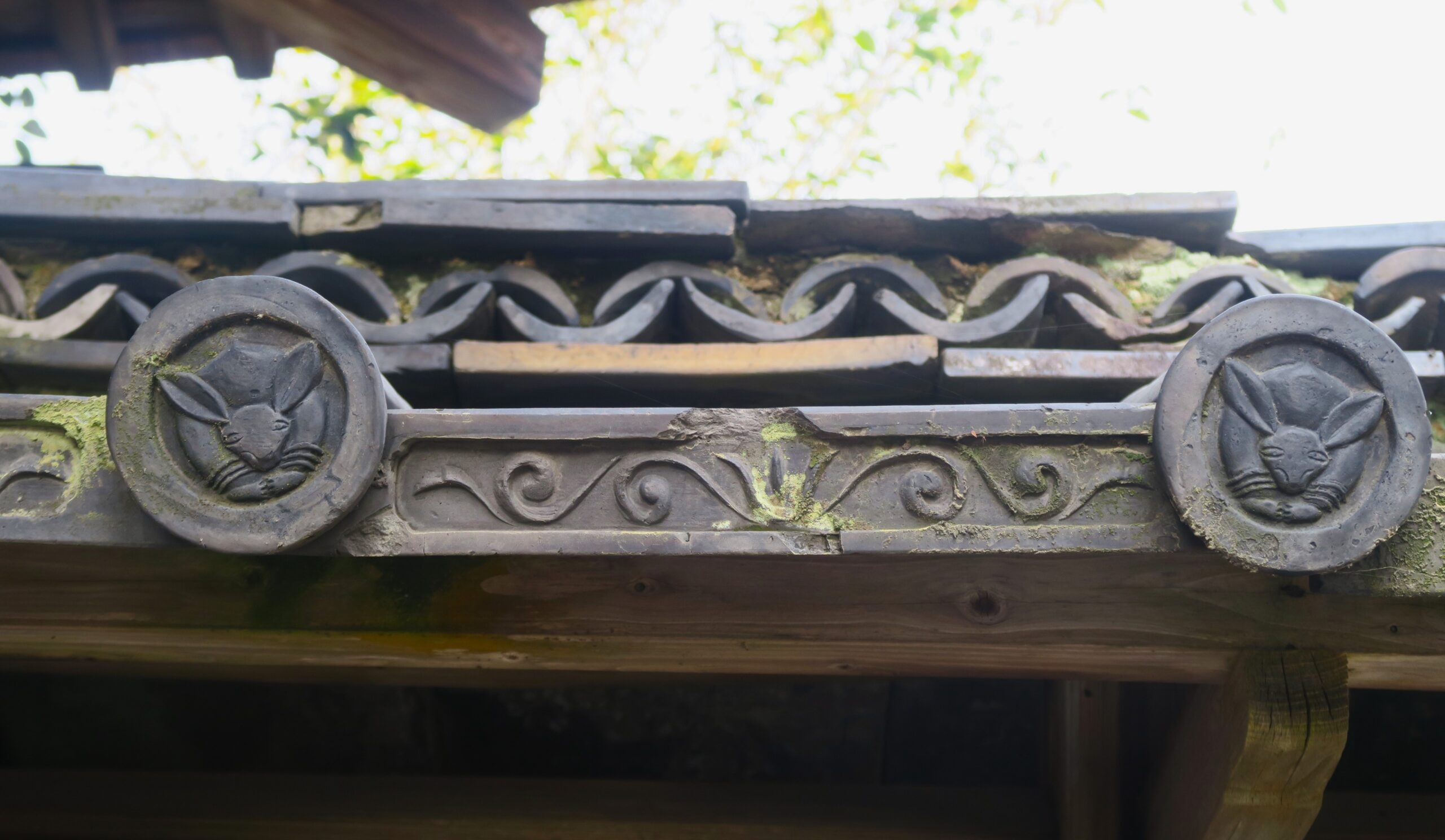 本殿を取り巻く透かし塀の瓦のもうさぎがデザインされています。境内のあちこちにウサギをモチーフにしたものがあるとのことで隠れウサギを探すのも楽しみな神社です。
