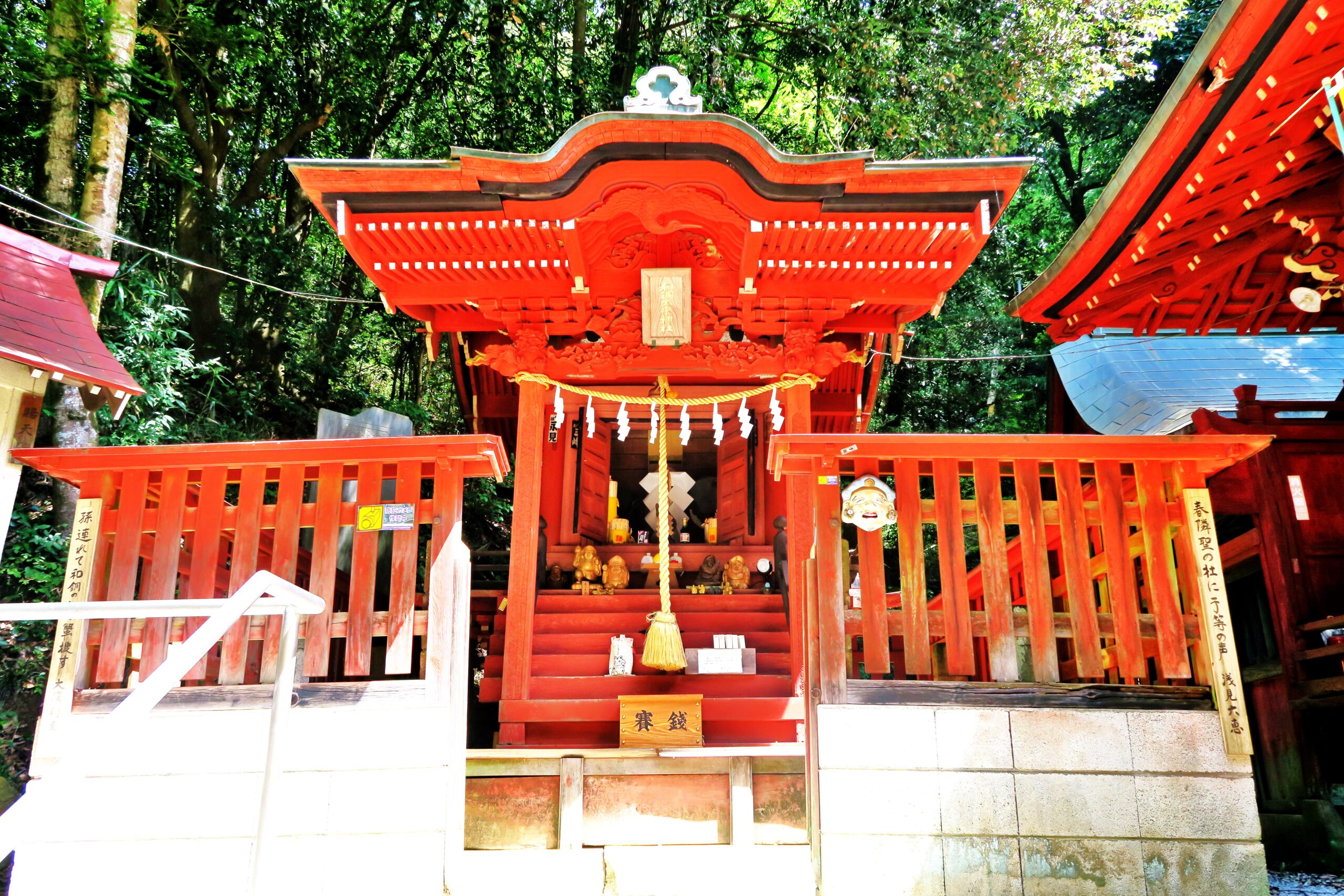 社殿は、一間社流造りの本殿と入母屋造りの礼拝殿からなり、江戸中期宝永6~7年(1709~10)の建築で、大宮郷の工匠大曾根与兵衛によって建立されました。彫刻は桃山期の遺風をわずかに残しています。社殿の右側には和銅開珎のモニュメントがあり、とても金運アップのご利益がありそうな雰囲気があります。
