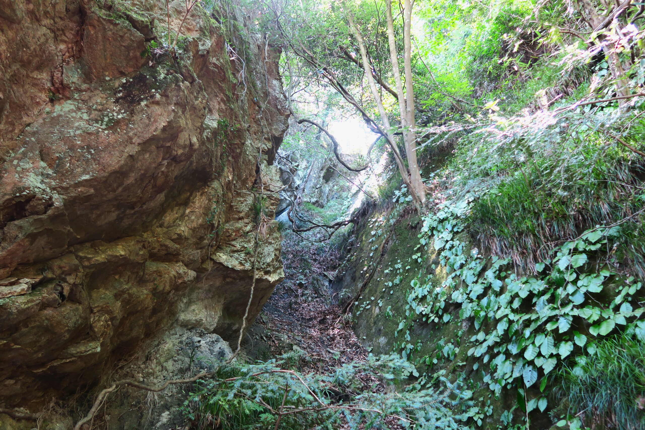 さらに「和銅露天掘り跡」へと続く急斜面の木々の間の道登っていく見学路があり、3分程度で削りとられた跡がはっきりわかる場所に着きます。不思議な羽をもつ家来の助けで飛ぶ鳥よりも速く毎日都へ和銅を送り届けた『羊太夫の伝説』が残されていることもあってまるで時代が昔に戻ったような錯覚を覚えます。