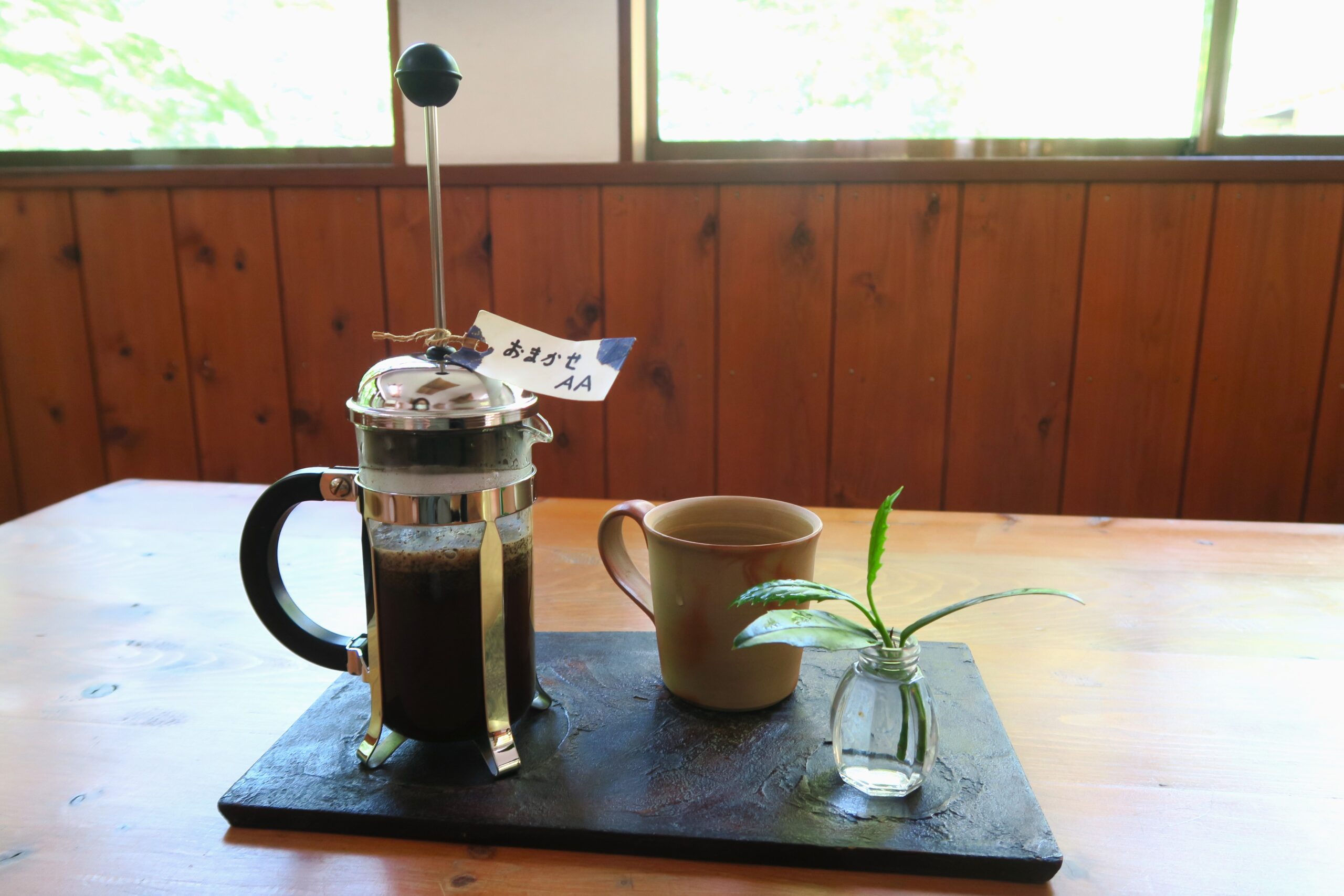 まずはフレンチブレスで抽出されるおまかせのオススメAAコーヒーで極上の味を楽しみます。スタッフさんが声をかけてくれるまで暫く待ちます。3分くらいしてプレスしてお飲みくださいと声をかけてもらえます。香りも甘味も優しく、それでいてコクもあり美味しいです。