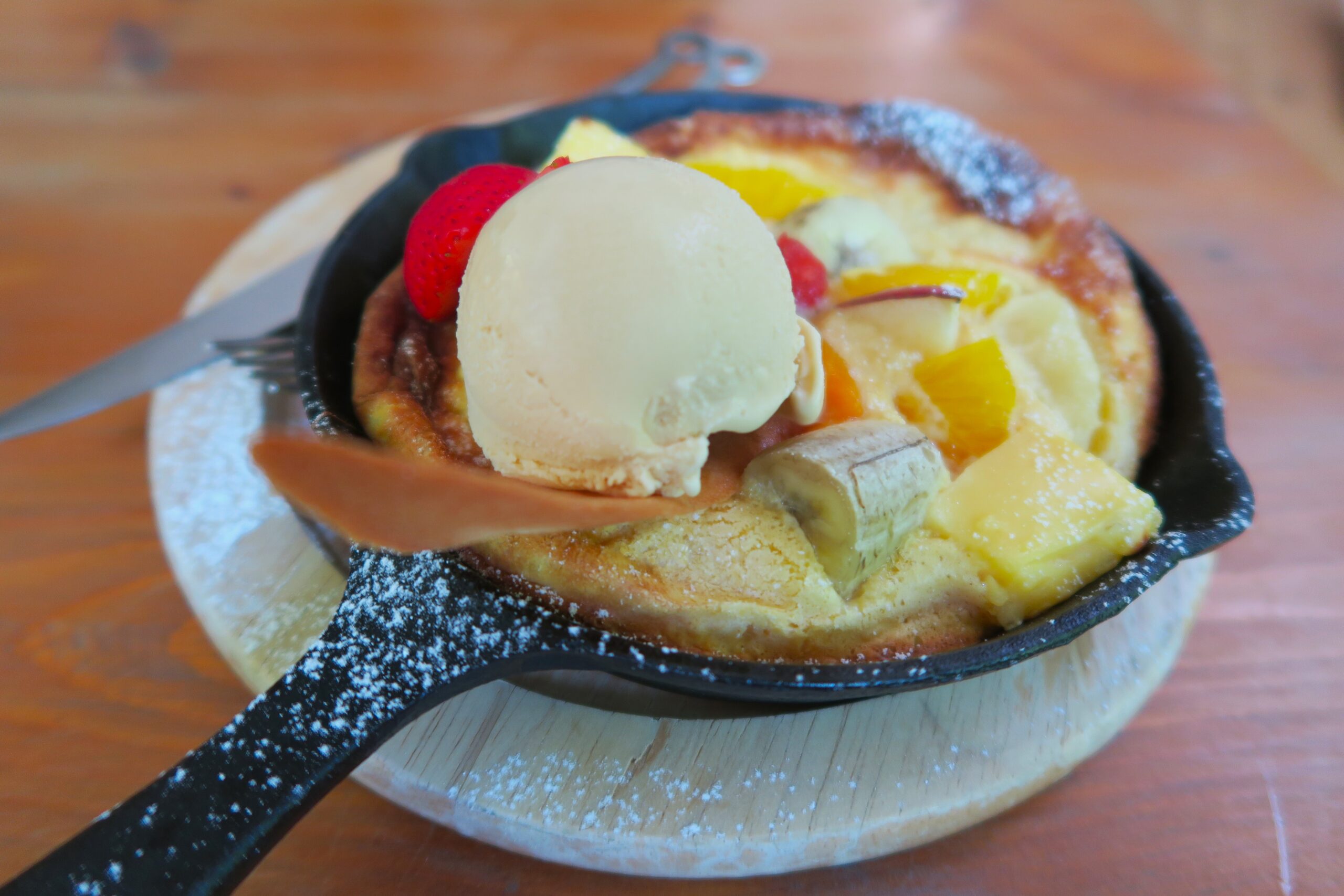 黒糖のような和の風味を感じられる秩父産のシロップは、採取した樹液を40分の1に煮詰めて作った貴重なものです。通常、各種パンケーキにはカナダ産のメープルシロップが付きますが、オプションで注文できるので、ぜひ味わってみてください。