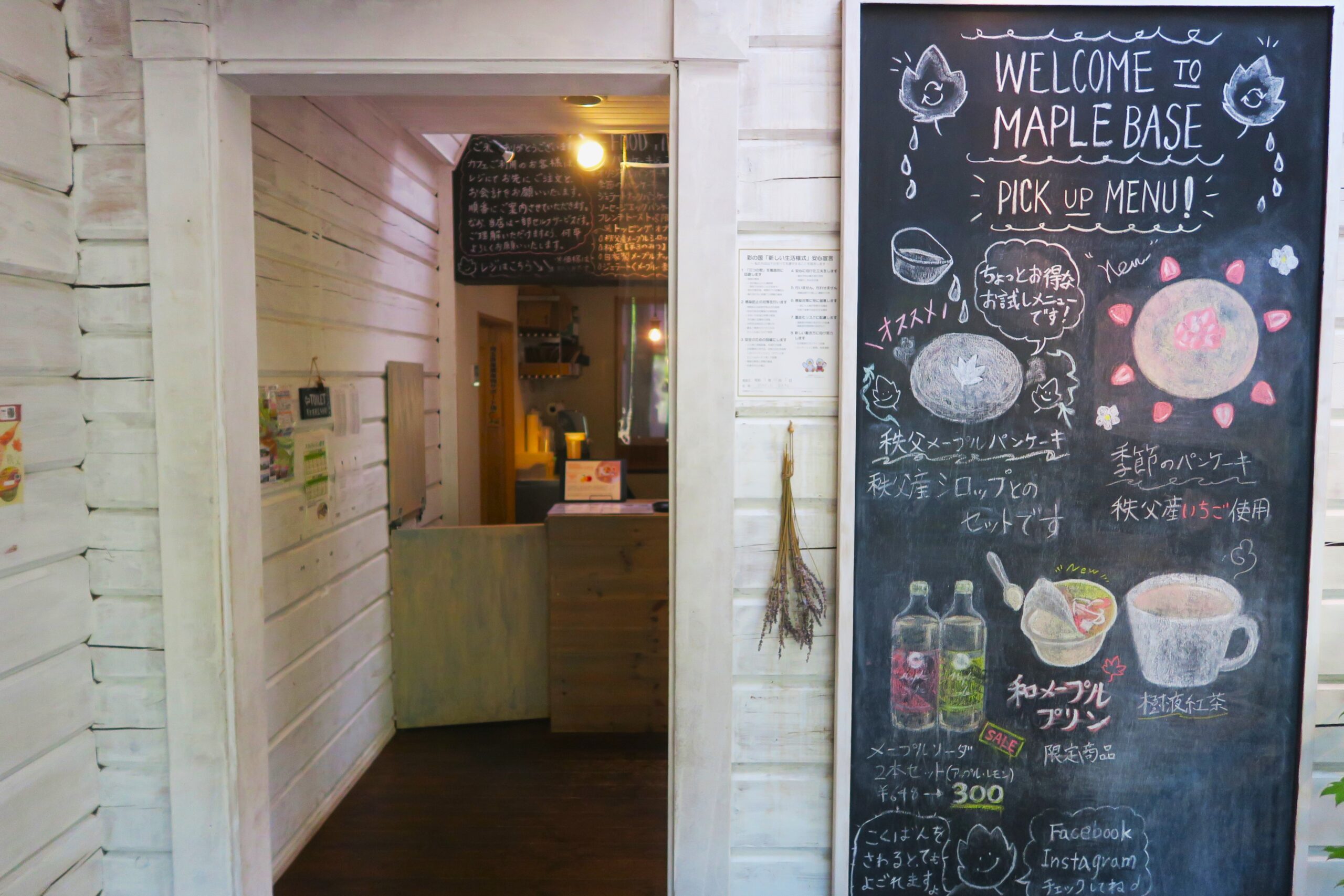 今回はちょっとユニークなカフェを訪れることにしました。秩父は日本でも数少ない産地の一つ、自生しているカエデの木から樹液を採取する取り組みが行われていて、カエデの樹液やメープルシロップなどを使った商品が生まれています。秩父ミューズパーク内のMAPLE BASE(メープルベース)は秩父メープルのブランド発信拠点。ここでは日本初のシュガーハウスとして、メープルシロップの製造機械をカナダから導入。珍しい国産のメープルシロップを製造、提供しており、カエデの樹液やメープルシロップといった豊かな森の恵みを味わうためのカフェを併設しています。