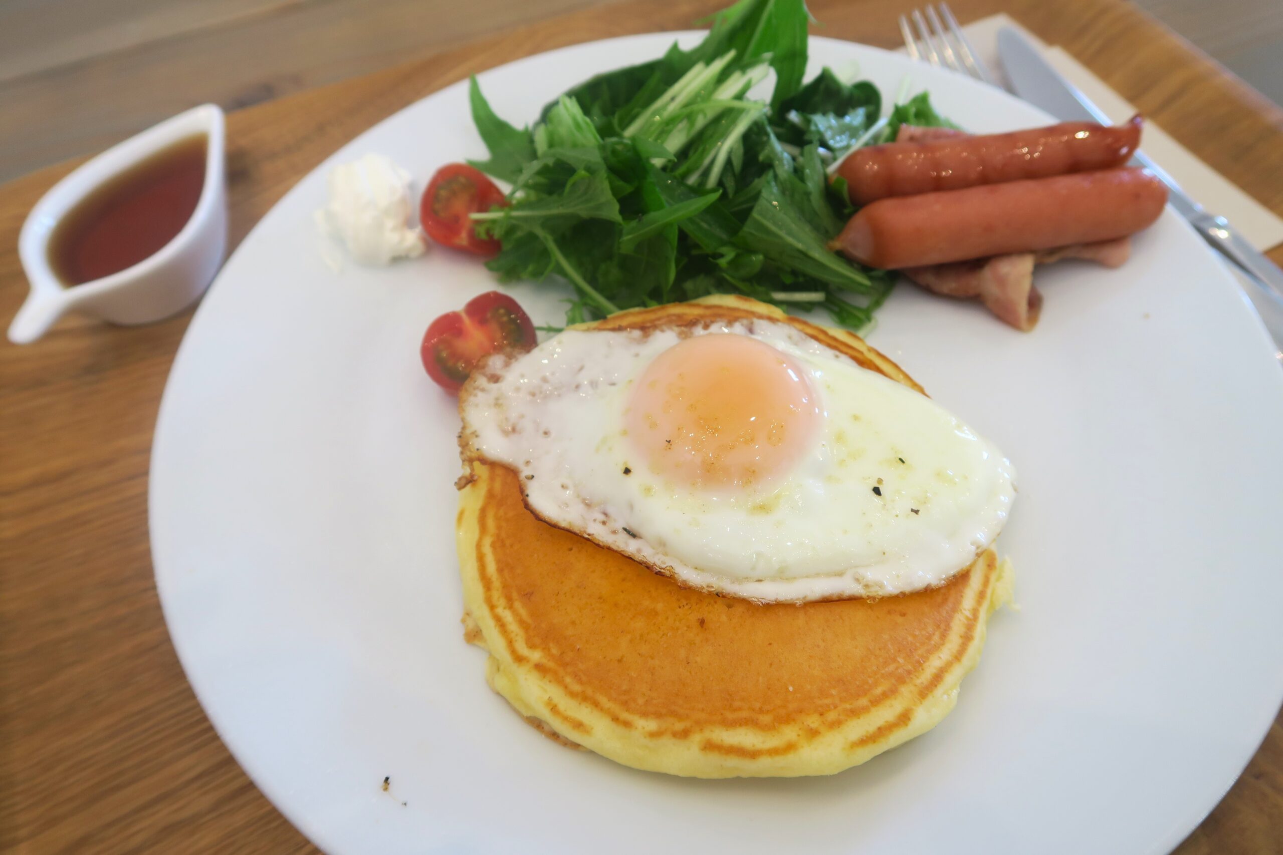 メニューに描かれた絵がかわいらしく、絵の通りの美味しいパンケーキでした。