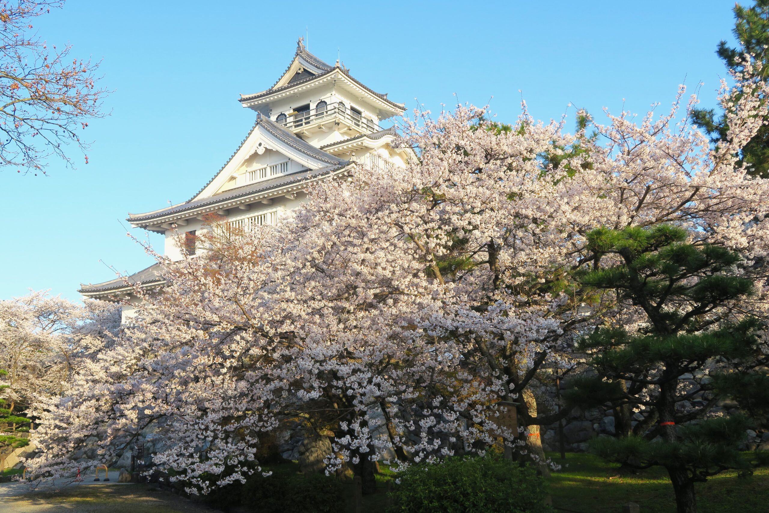 城の周辺は秀吉にちなんで豊公園と名付けられた城跡は桜の名所で「日本さくら名所100選」に選ばれており、ソメイヨシノを中心に約800本の桜の木が4月上旬から開花します。