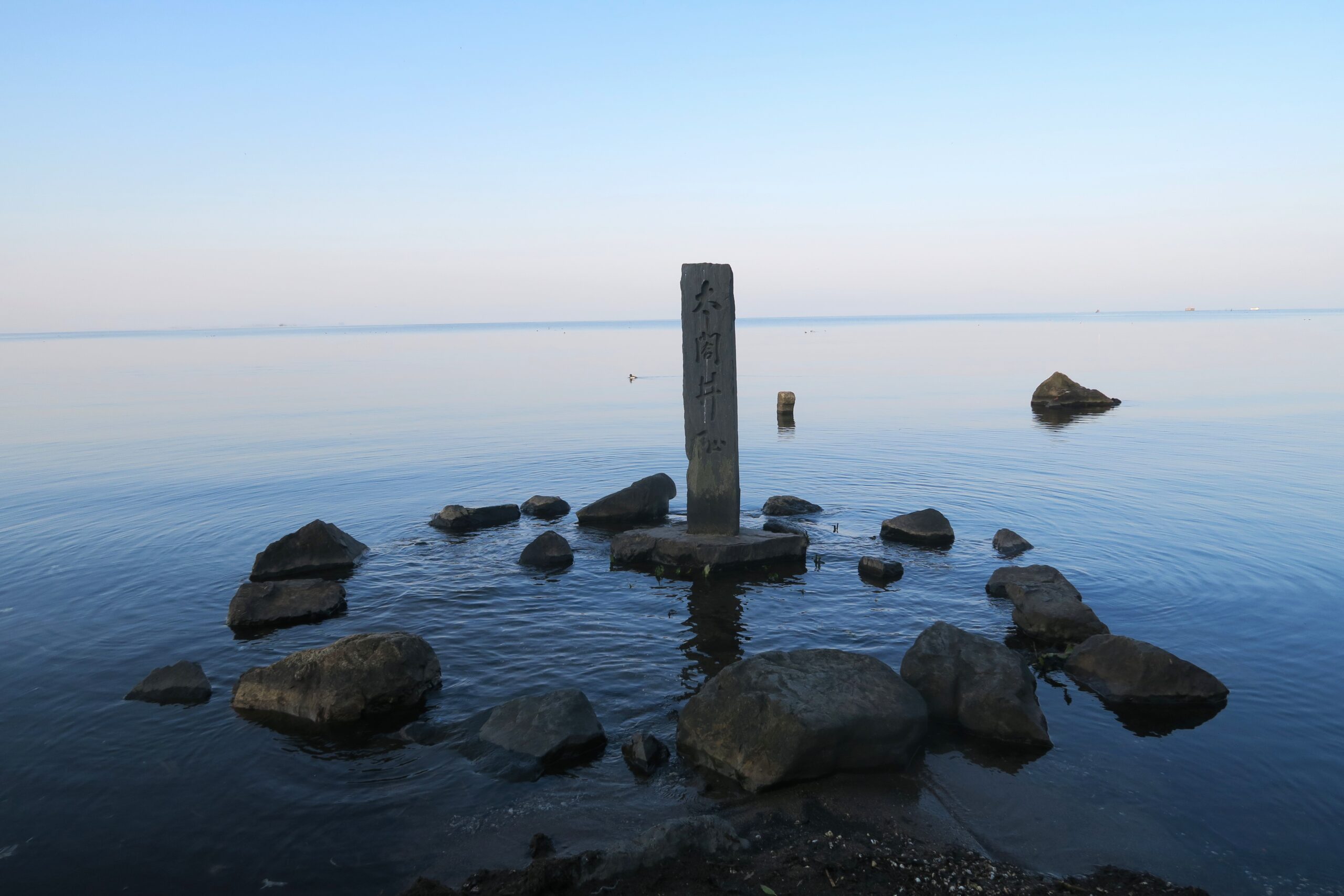 湖畔には秀吉が築城時に掘らせたと伝わる数少ない長浜城遺構のひとつ「太閤井戸」があります。昭和14年(1939)に琵琶湖が渇水した際に発見された井戸です。琵琶湖の水位が高い時期は碑だけが湖面に浮かんでいます。