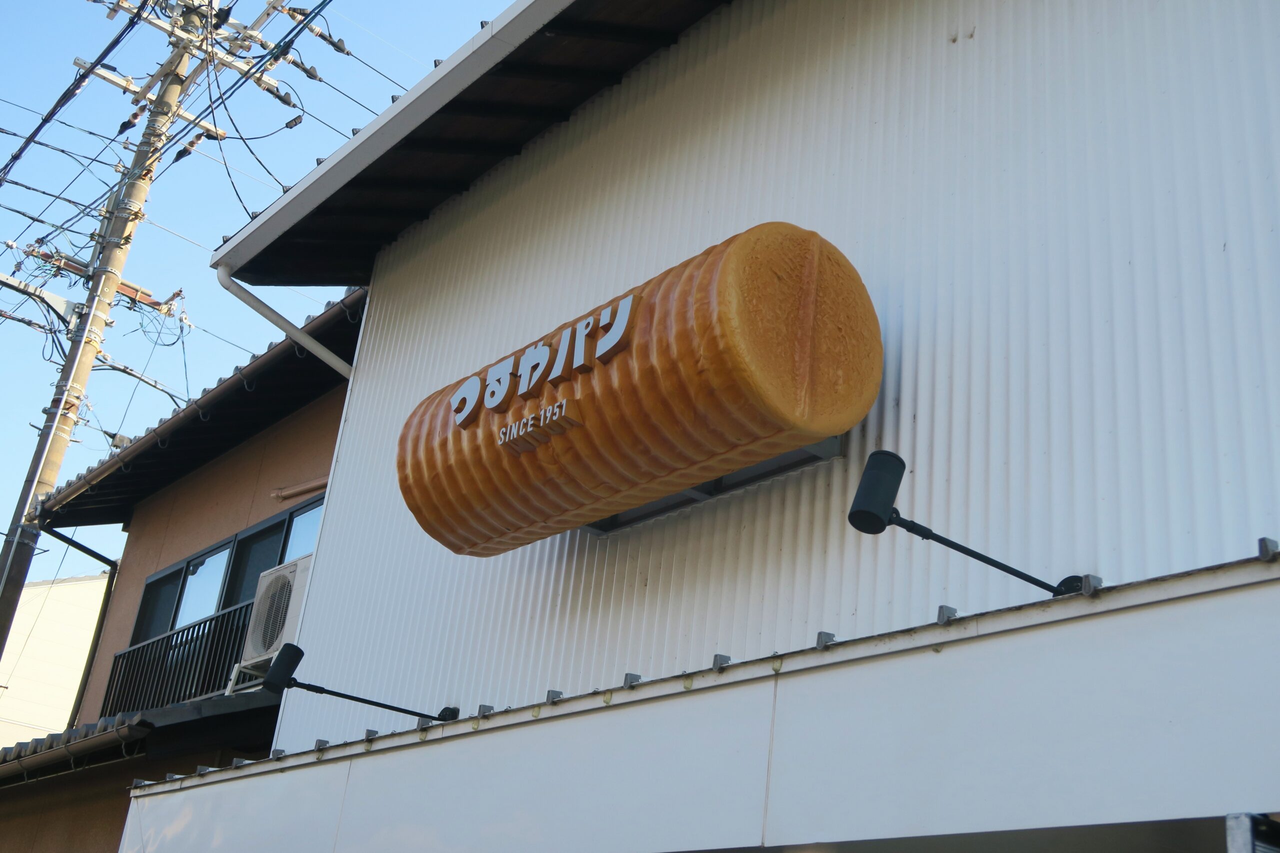 B級グルメならテレビなどで話題をよび、今やかなりの認知度を誇る昭和26年(1951)創業のつるやパンの「サラダパン」。滋賀県の湖北・木之本にある小さな商店で約50年前に誕生したローカルフーズです。ふわふわのコッペパンの中に、マヨネーズで和えたたくあんがぎっしり詰まっていて、コールスローサラダのような、一度食べるとクセになる味が特徴です。日持ちをさせようと水分の少ない野菜を探したところ、田舎の家庭ならどこにでもあったたくあんを抜擢したのが始まりだそうです。その2号店がまるい食パン専門店として長浜駅近くにできたのです。大きなまるい食パン型の看板が目印です。