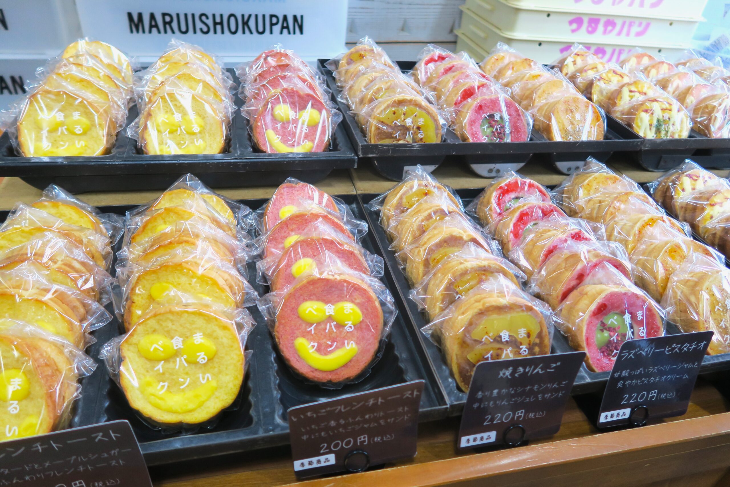 「まるい食パン」はサラダパンと並びつるやパンの看板商品として創業当初から作られているパンで、フワフワな食感が美味しく、ユニークな具材をはさんだアレンジパンも販売されています。