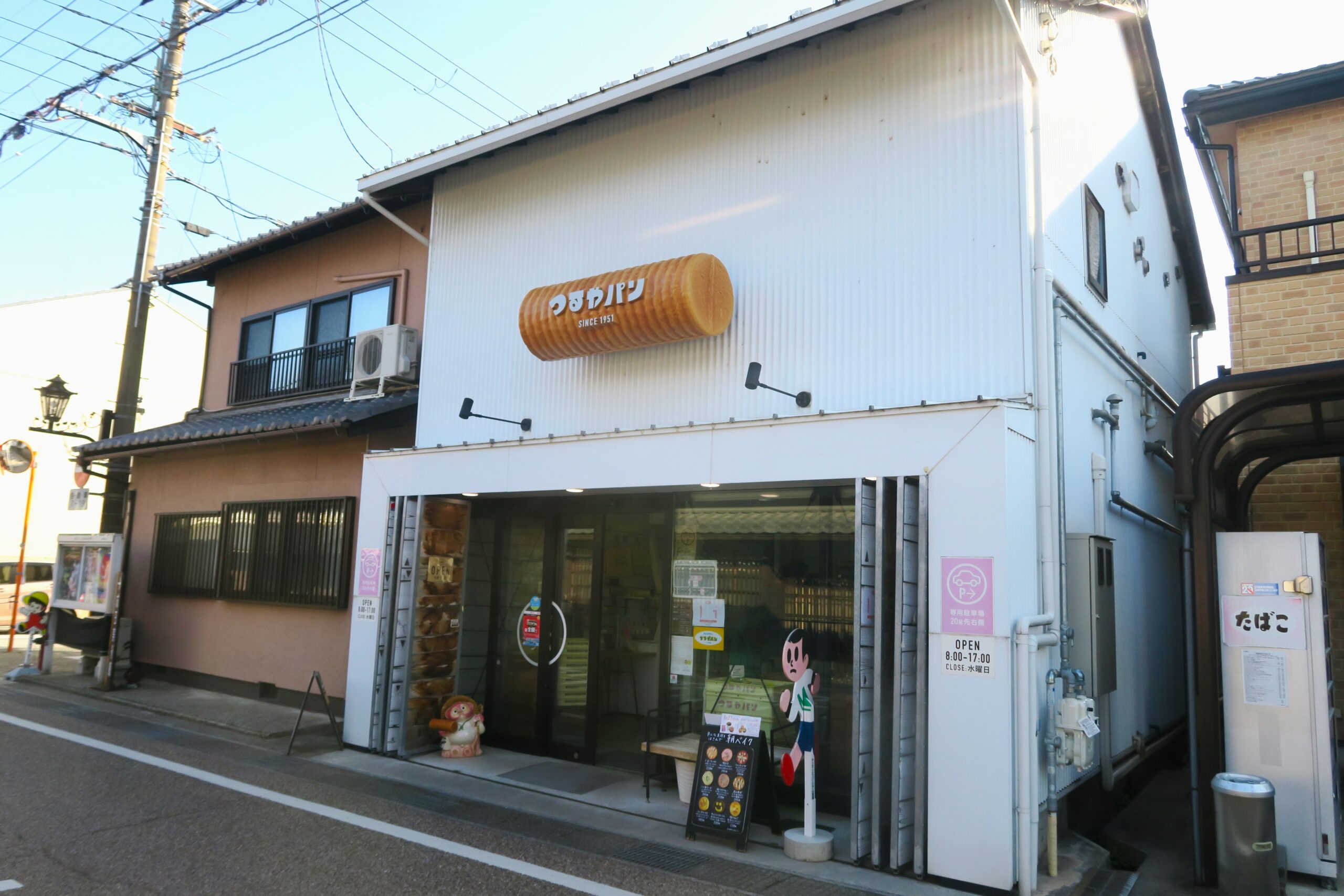 お店の前には可愛らしいピンクの信楽焼の狸の置物といっしょにゆるキャラとしても人気の滋賀の隠れた人気者「飛び出し坊や」が。とび太くんとも呼ばれる交通事故防止の看板で、1970年代に子供の交通事故が多発したため設置を開始。いつの間にか増え続けて滋賀中の至る所で目にするようになり、全国でトップクラスの設置率になりました。愛嬌のある男の子のキャラクターは画家・久田泰平さんが手掛け、本名は“飛出とび太”。年齢は永遠の小学8年生です。