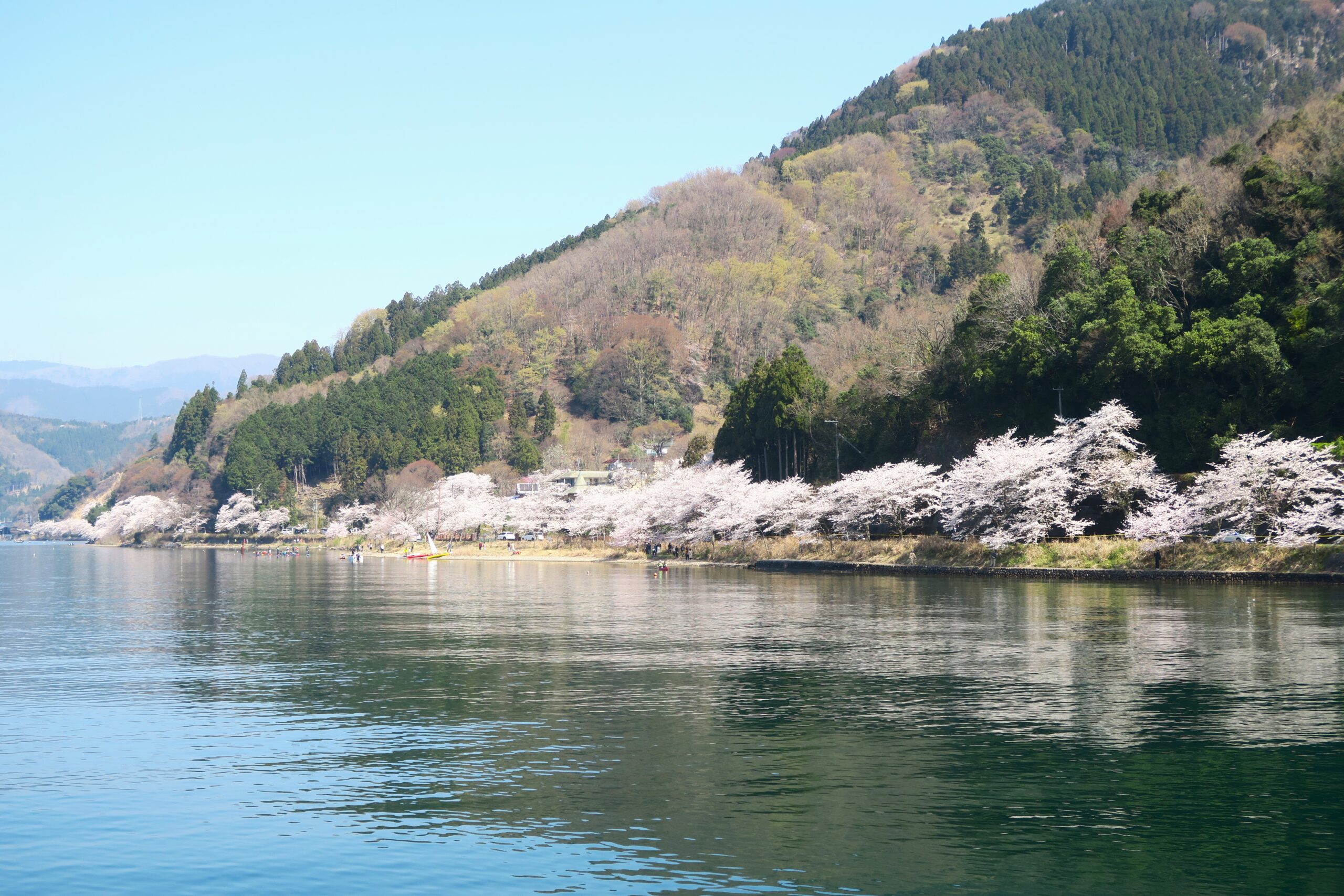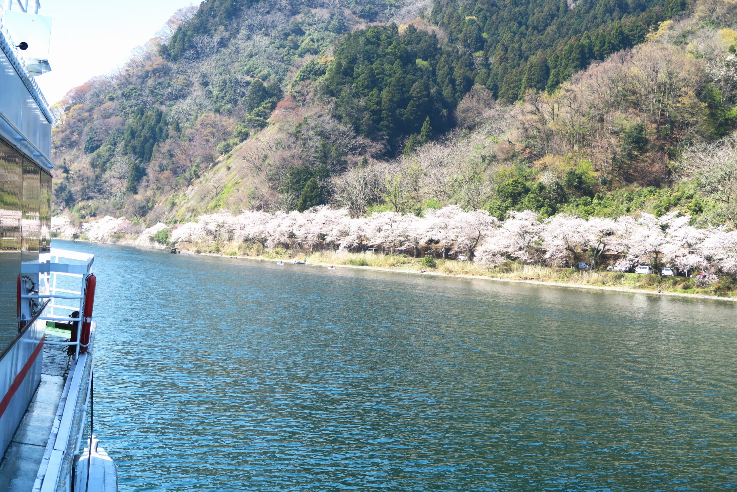 復路も50分の船旅、桜に酔いしれて戻ります。昼からは和船の船旅を楽しみます。