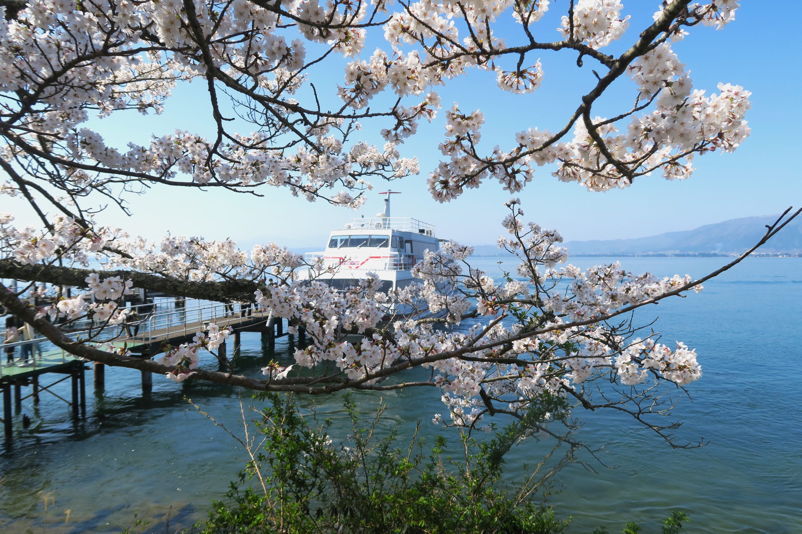 海津大崎で下船し、桜並木の散策を約30分間楽しめます。