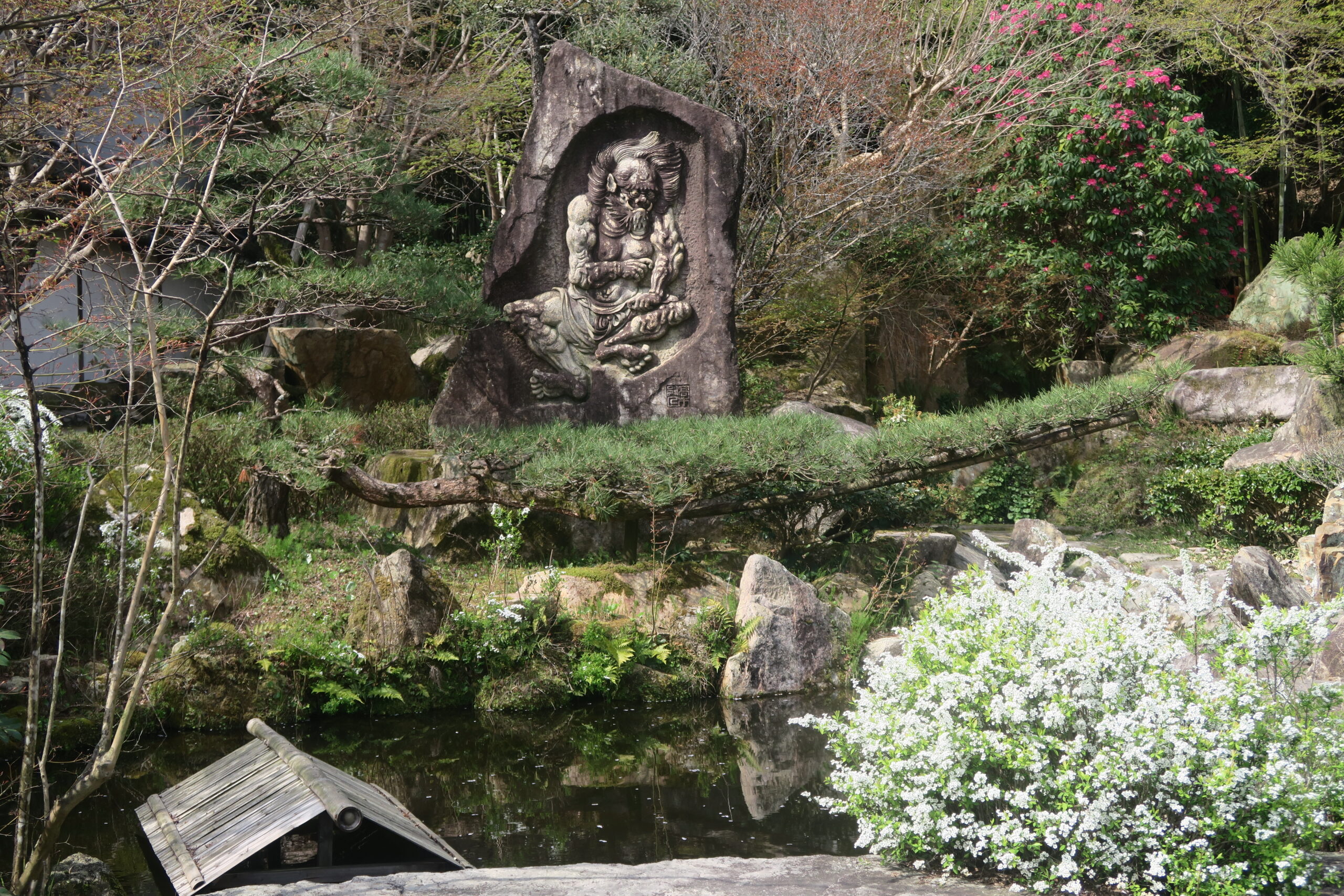 石山寺駅へ戻る途中には約800年前の中興の祖・朗澄律師の遺徳を偲んで造られた庭園・朗澄律師大徳遊鬼境を覗いてみます。多宝塔内部の壁画は朗澄律師の筆によるものではないかと言われています。没後、石山寺経蔵の一切経、並びに聖教を守護し、万民の降魔招福の為、鬼の姿となることを誓い承元3年5月14日入寂されました。