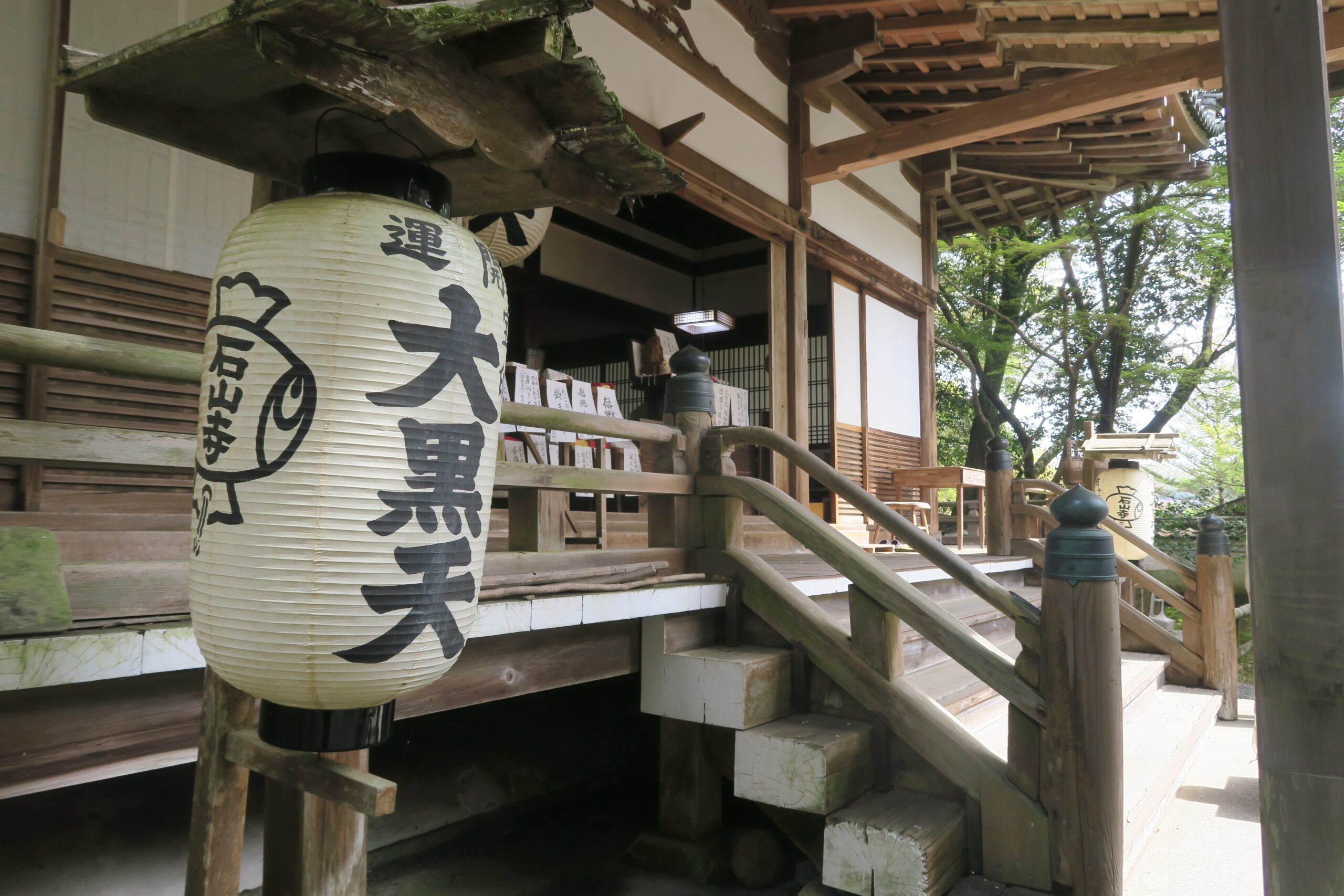 最後は大黒天に参って石山寺の門前に出ます。万寿元年(10249に石山寺の三人の僧の同じ夢のお告げによって湖水より出現した弘法大師作の大黒天をご本尊として祀っています。福招きの大黒様として古来より有名です。