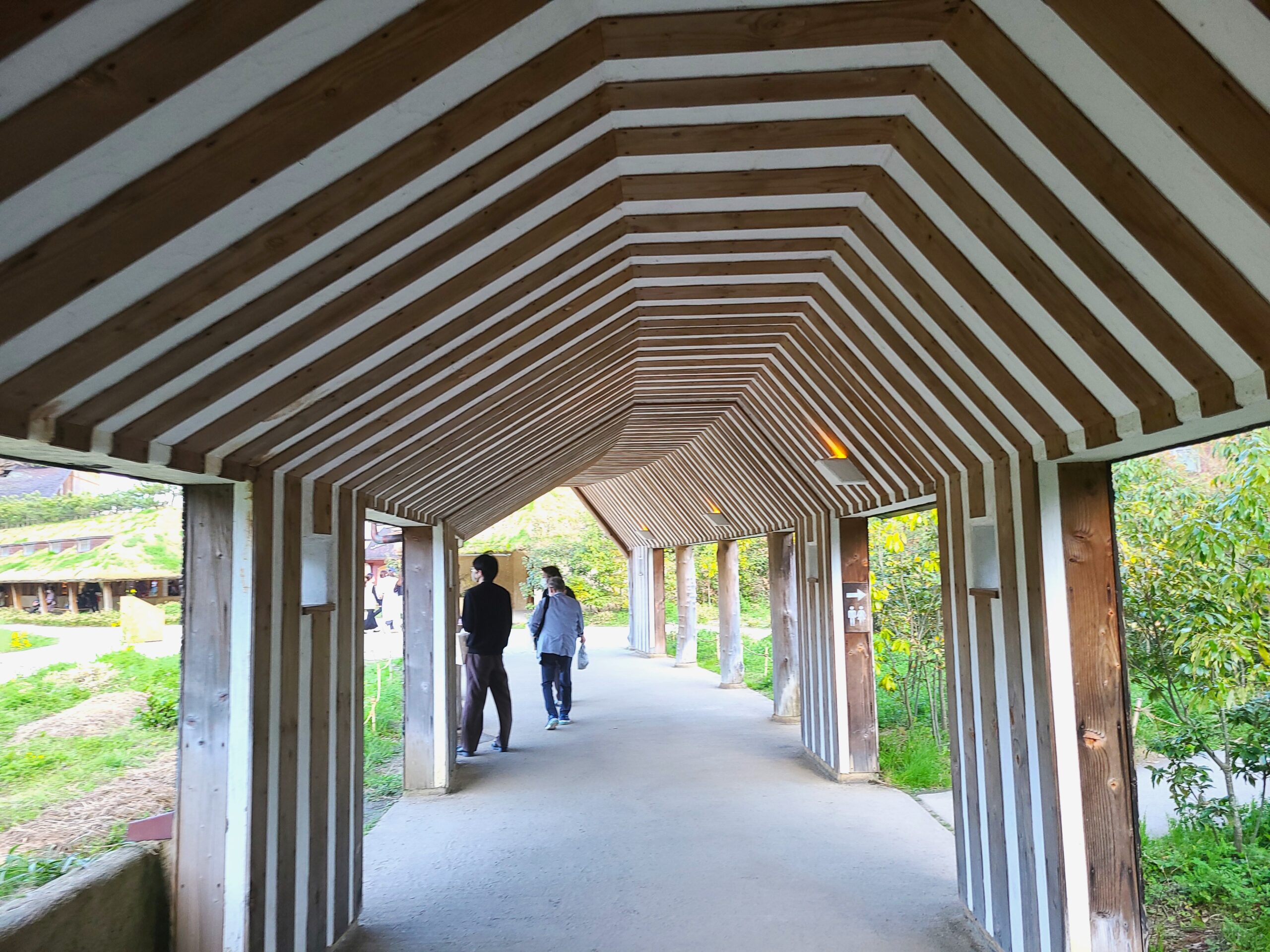 フードコートやパンショップなどもあり、歩き疲れたら空気が澄んだ広い空の下で回廊に置かれたベンチに腰を下ろして、ひと休みするのもいいですよ。