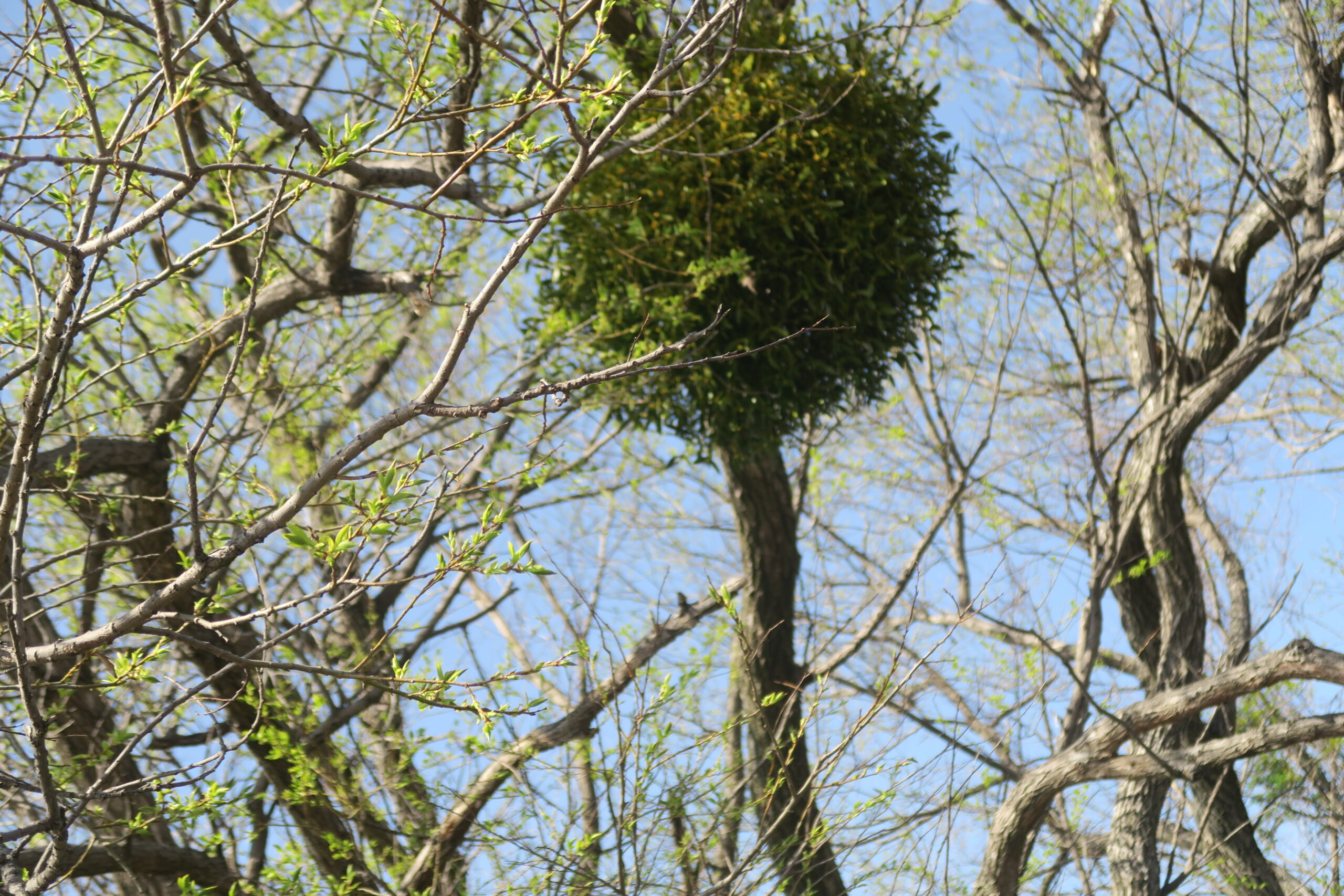 木の上部には宿り木のモコモコした塊を見ることができます。その名の通り樹木に寄生する植物です。
