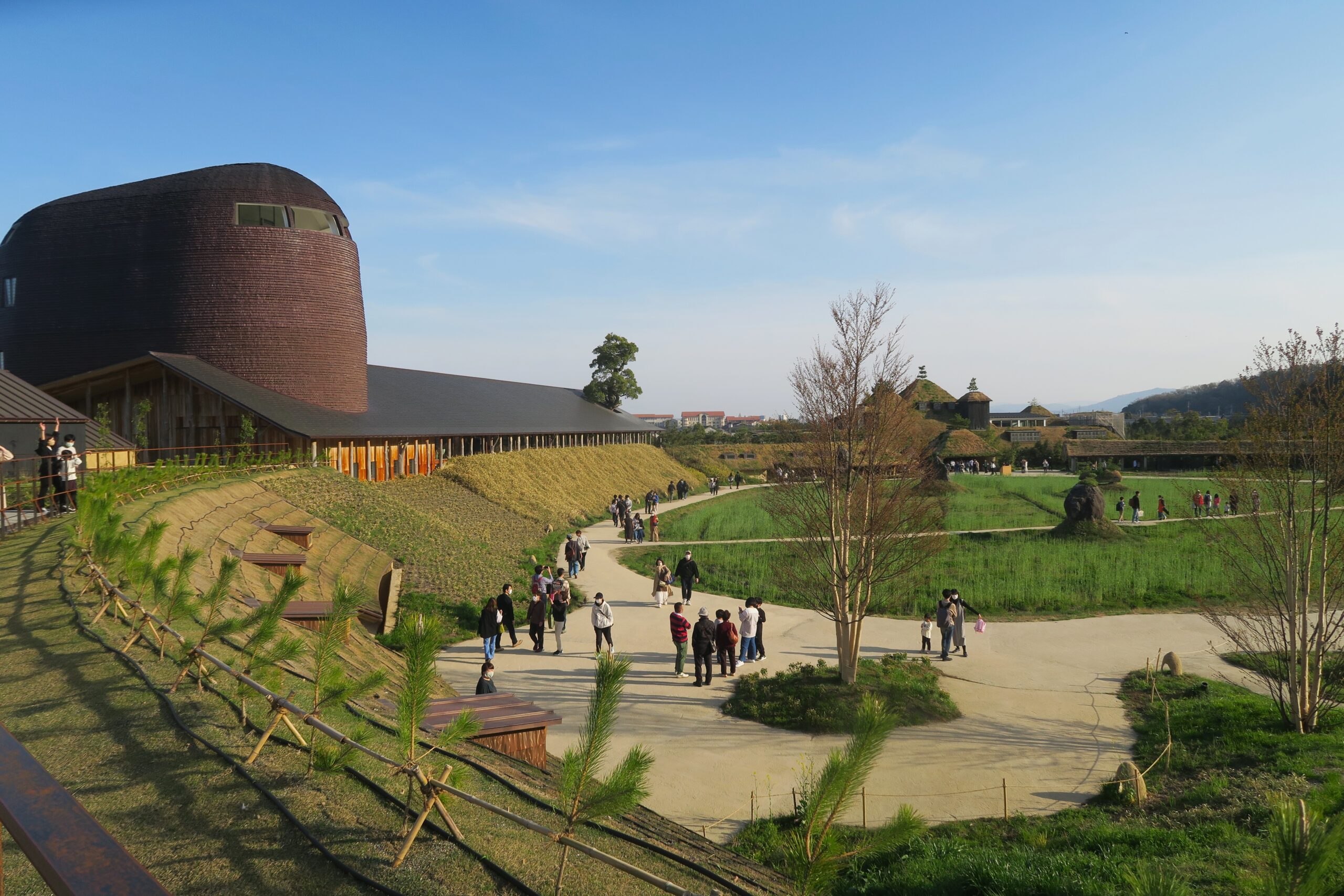 敷地はなんと3万5000坪、甲子園球場のおよそ3個分の広大な敷地にな豊かね自然を囲むように建てられたショップ棟を回廊が弧を描くようにつないでいて、散策路のように歩けるようになっています。