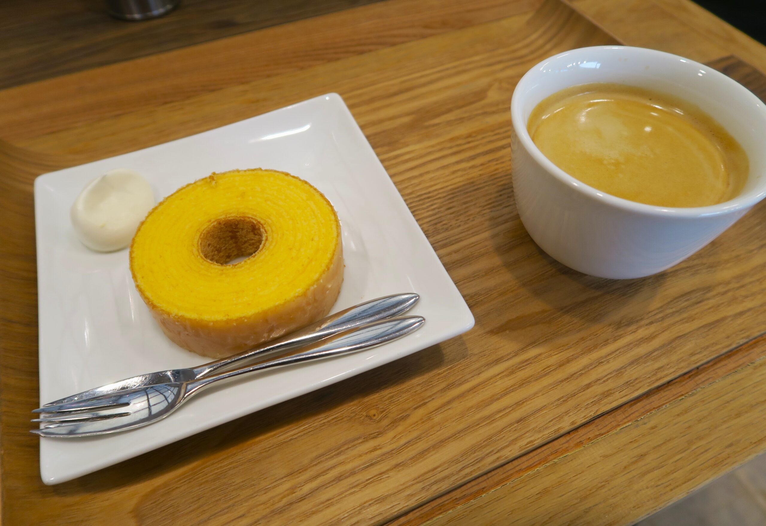 おすすめは「焼き立てバームクーヘンminiセット」。焼き立てのバームクーヘンはふわふわ感とたまごの風味が際立っています。オリジナルブレンドのコーヒーも良くあいます。