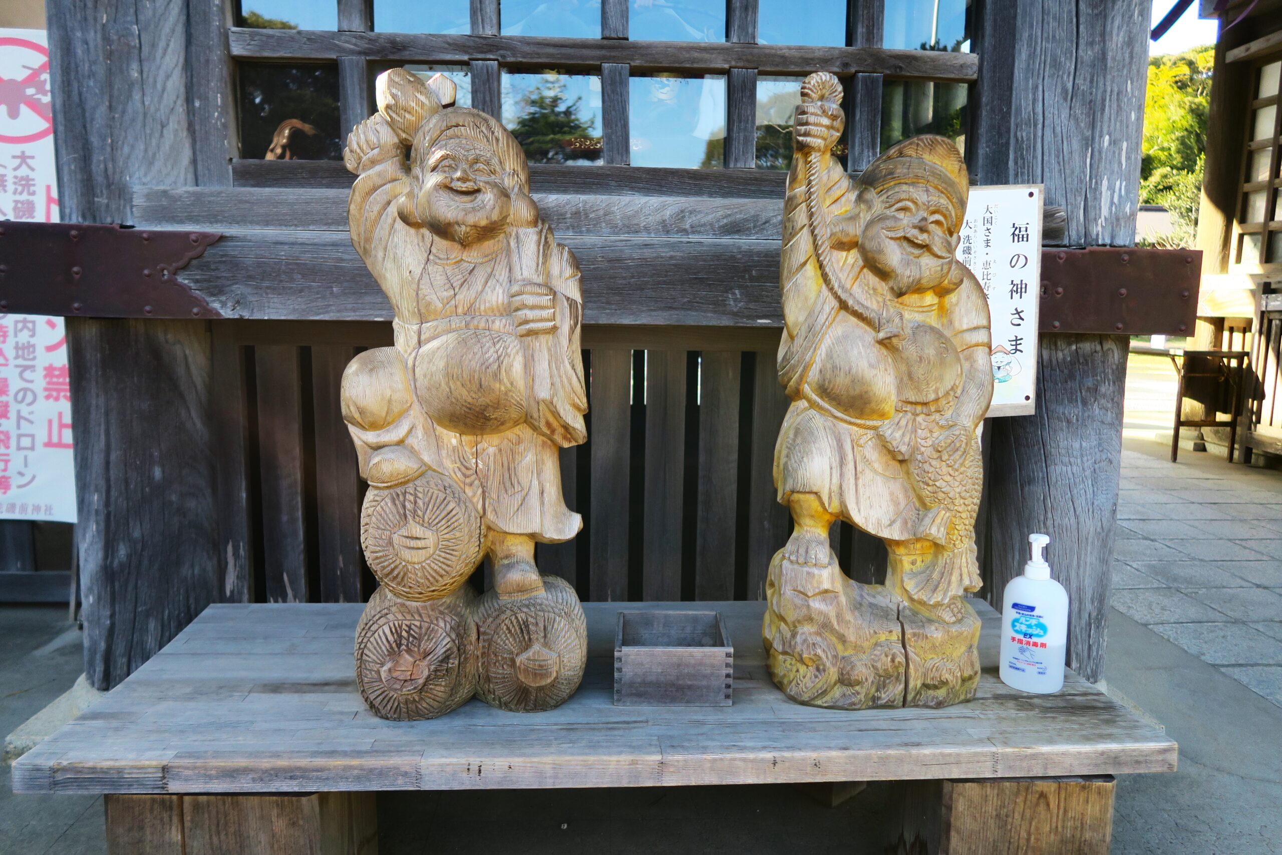 その脇には福の神さまとして大国様とえびす様の木彫りが置いてあり撫でて福を分けてもらいます。