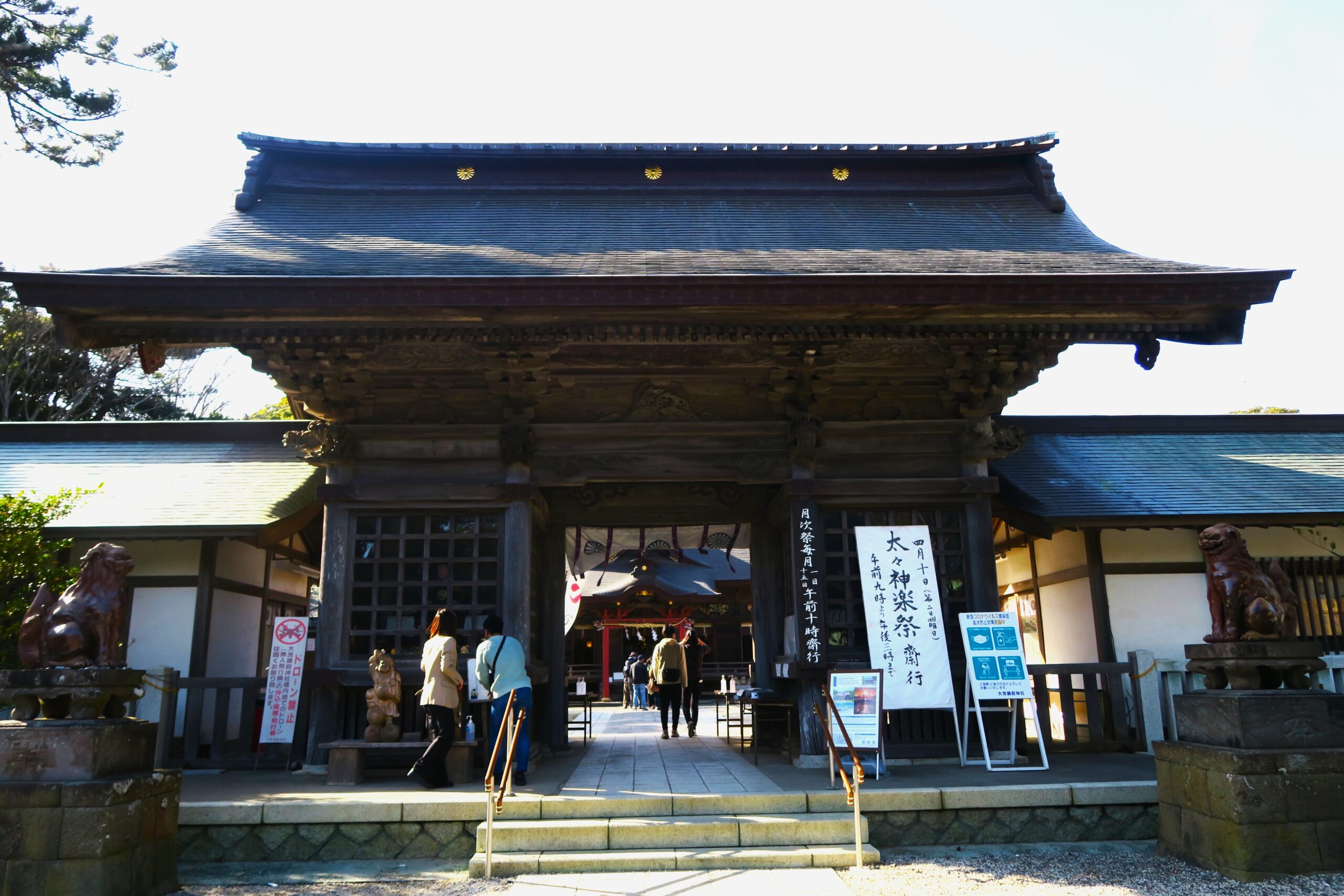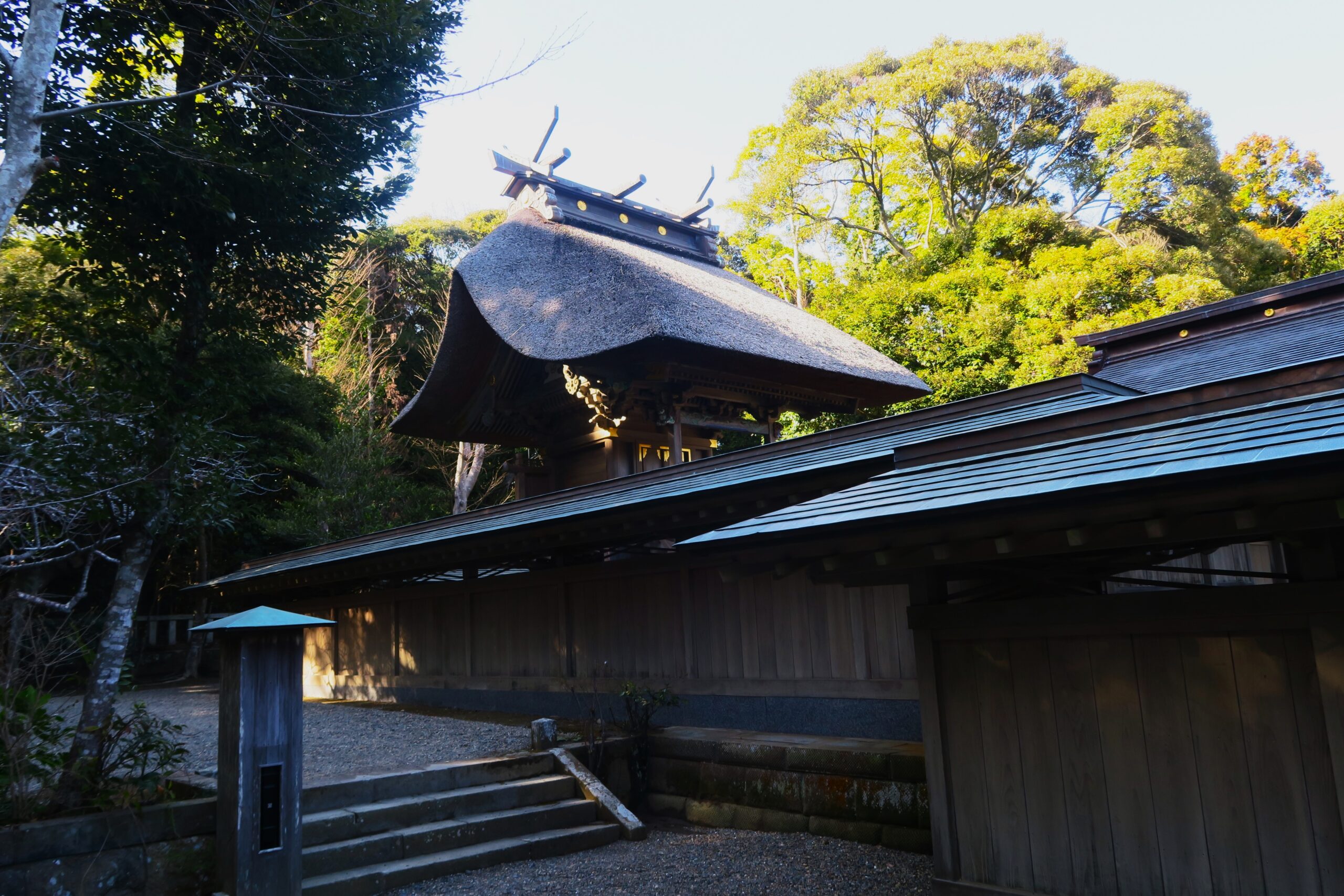 桁行5間、梁間2間で向拝1間付きの入母屋造です。随身門、拝殿、そして奥にある本殿はすべて海に向かって建てられています。そのため、朝日が昇るにつれて、社殿の影が取り払われ、黄金色に輝いていきます。参拝を済ますと自分自身の心にも光が差したようで清々しい気持ちになります。ご祭神は医薬・よみがえりの神様なので、体や気持ちが再生されるご神徳を授かったのかもしれません。