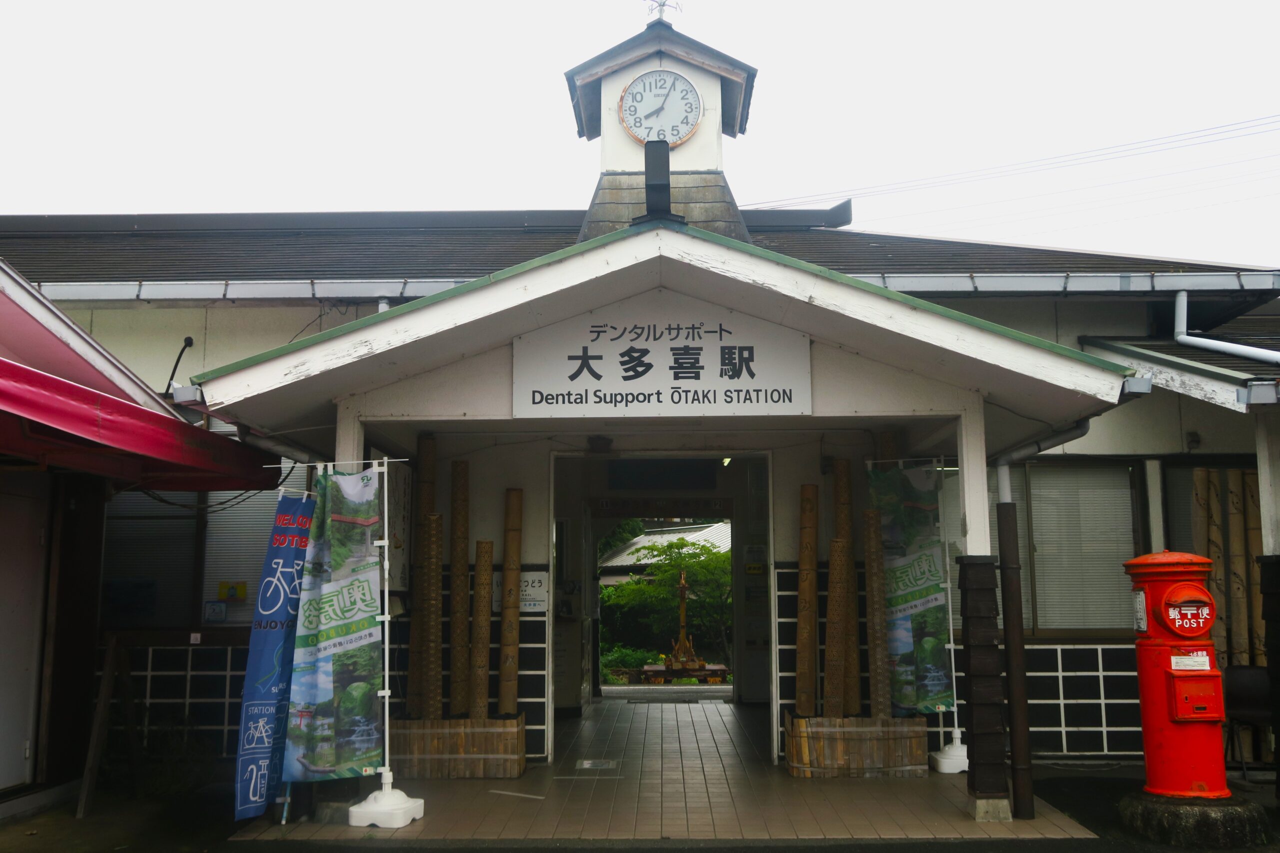 小さな時計台が屋根に乗せられた可愛らしい駅舎、関東の駅百選認定の「大多喜駅」は、昭和5年(1930)4月1日大原~大多喜間の15.9kmが開通した国鉄木原線の開業にあわせて造られました。現在はいすみ鉄道のデンタルサポート大多喜駅となっています。吉永小百合主演のモントリオール世界映画祭審査員特別賞グランプリとエキュメニカル審査員賞の受賞作「ふしぎな岬の物語」で、都会の生活から逃げるように帰郷したみどり(竹内結子)が初登場するのがこの駅です。