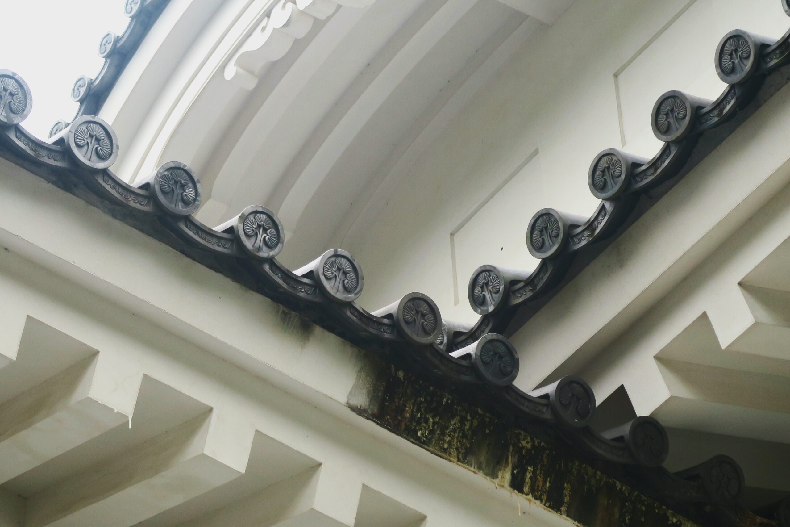 博物館の屋根の瓦には二つの家紋が使われています。最初の城主となった本多家の紋「丸に立葵」と最後の城主の大河内松平家の紋「三つ扇」です。武家の家紋は、権力の象徴であるとともに合戦の際に敵味方の識別をしやすくするために作られたものです。