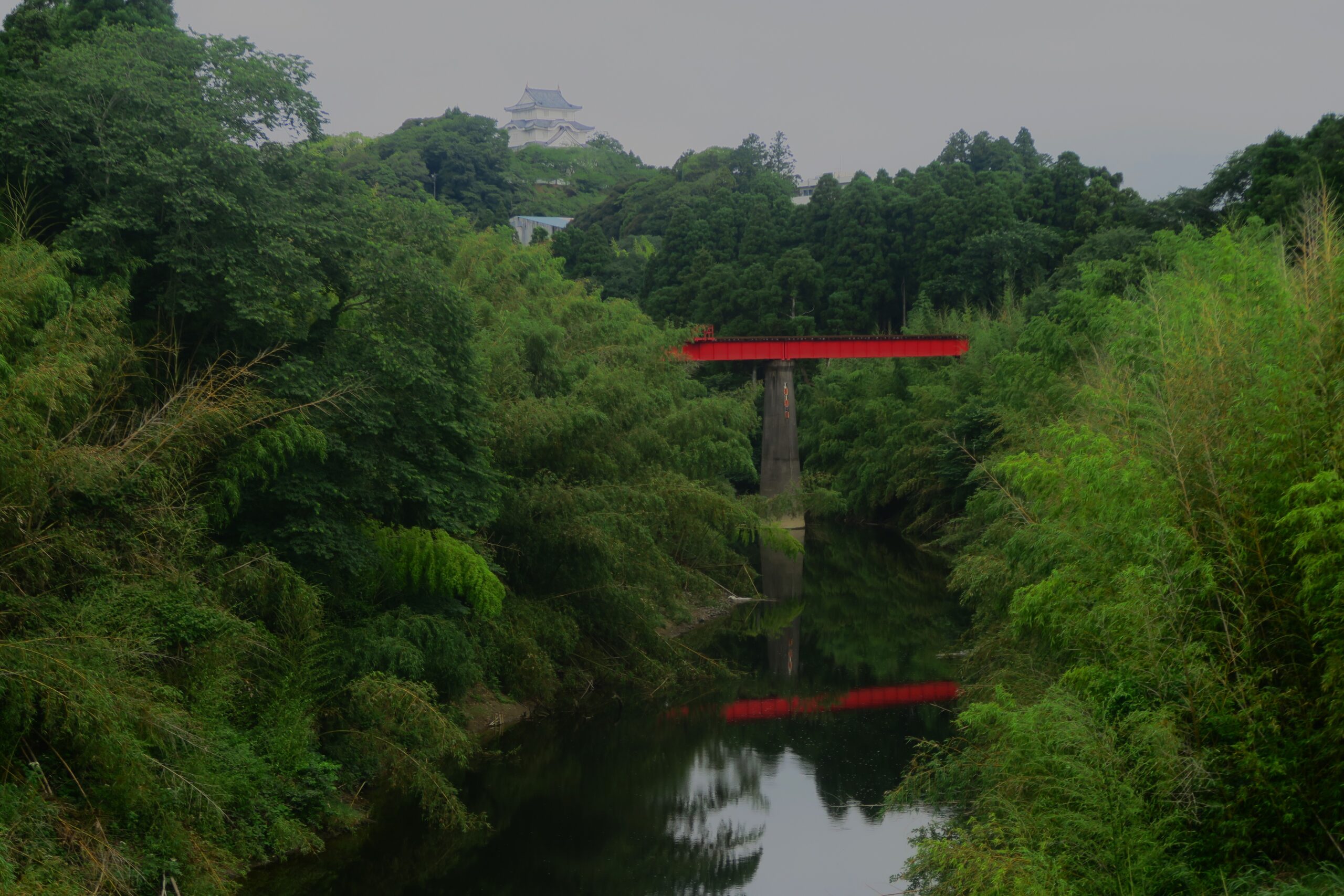 また御禁止川(夷隅川)に架かる三口橋から赤い鉄橋越に見る大多喜城は撮影スポットです。