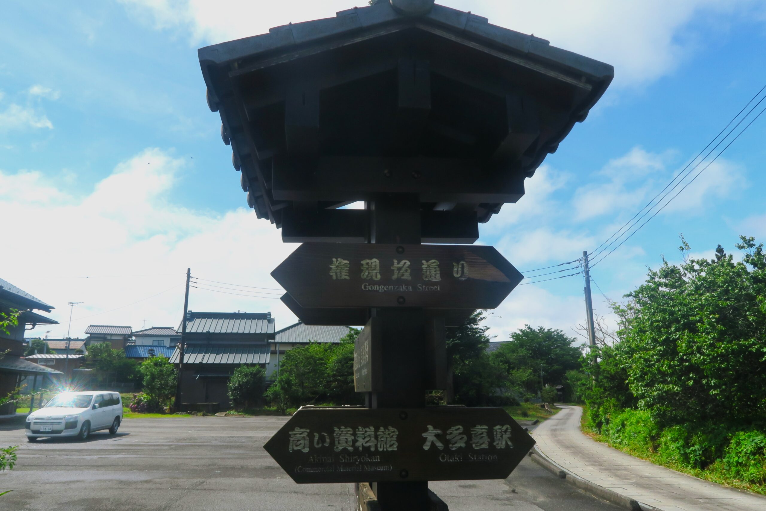 また大多喜の城下町の町割りは忠勝によって行われました。江戸時代の雰囲気を残すのは大多喜城とは線路を挟んで反対側。外房の勝浦と県央の名柄町を結ぶ旧大多喜街道(現在の城下町通り)がメインストリート。鍵の手に曲がる道筋は城の防御を優先した江戸時代の名残です。通り沿いに北から紺屋、田丁、猿稲、久保、桜台、新丁、柳原と続く七つの町があったことから「根小屋七町」と呼ばれ、紺屋は染物屋、商家の多い久保などと、職域によって住み分けられて城下町が形成されていいた経緯があり、現在も江戸時代から明治時代に建てられた国の文化財級の建物が残り、縦格子が見事な江戸時代の町家や土蔵造りの商家、造り酒屋、旅館などが点在します。車で走るには厄介ですが、通りを歩くなら城下町を実感することができます。まずは大多喜町役場近くの権現坂通りから風情ある石畳の酒蔵小路を歩きます。