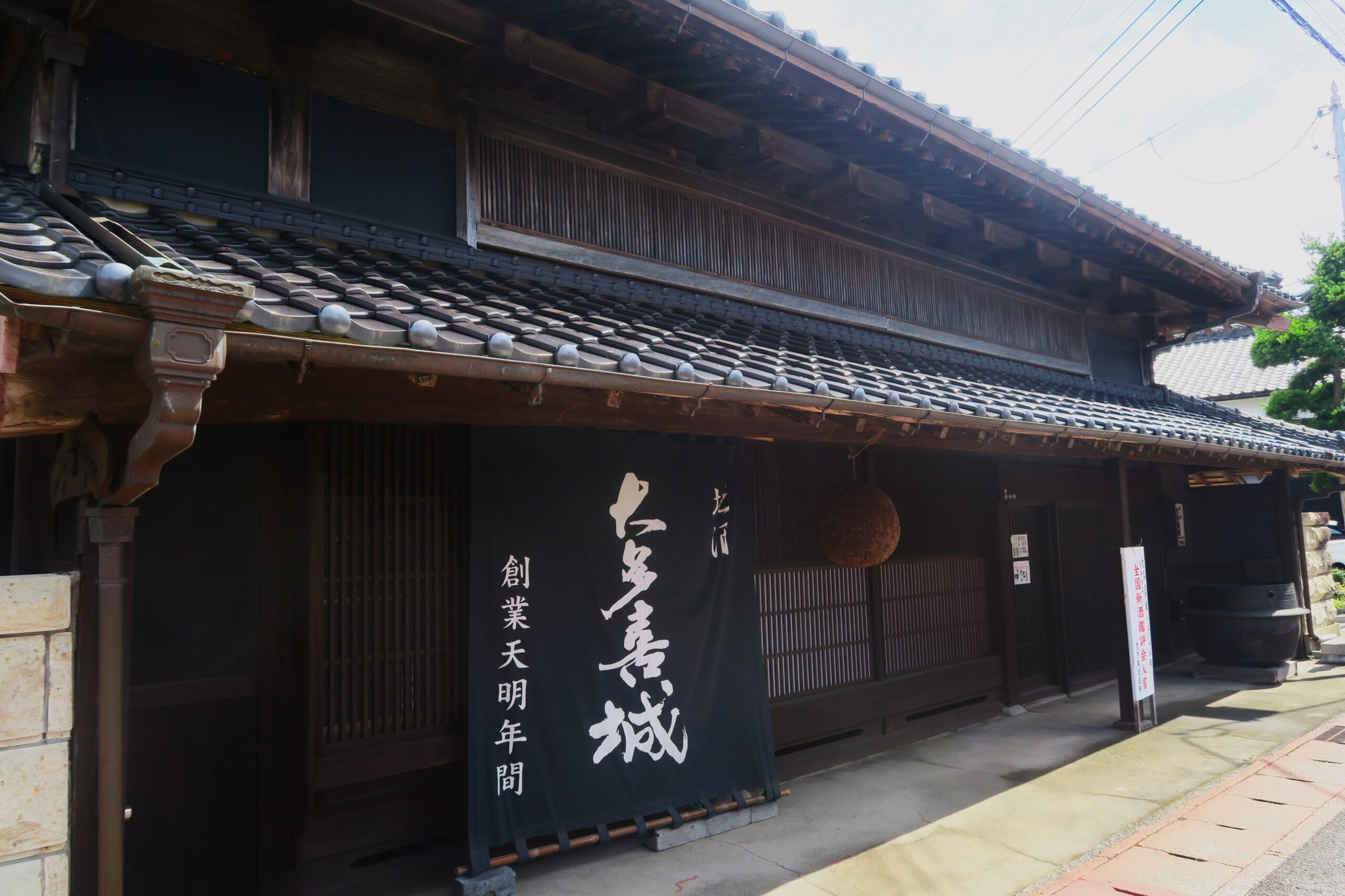 石畳を挟んだ向かいには天明年間(1781~1789)創業の酒蔵「豊乃鶴酒造」があります。明治時代に現在地に移り、国道沿いの母屋や赤煉瓦の煙突、酒蔵などが国の登録有形文化財です。代表銘柄の「大多喜城」」は、すっきりとした辛口タイプでおみやげに人気。