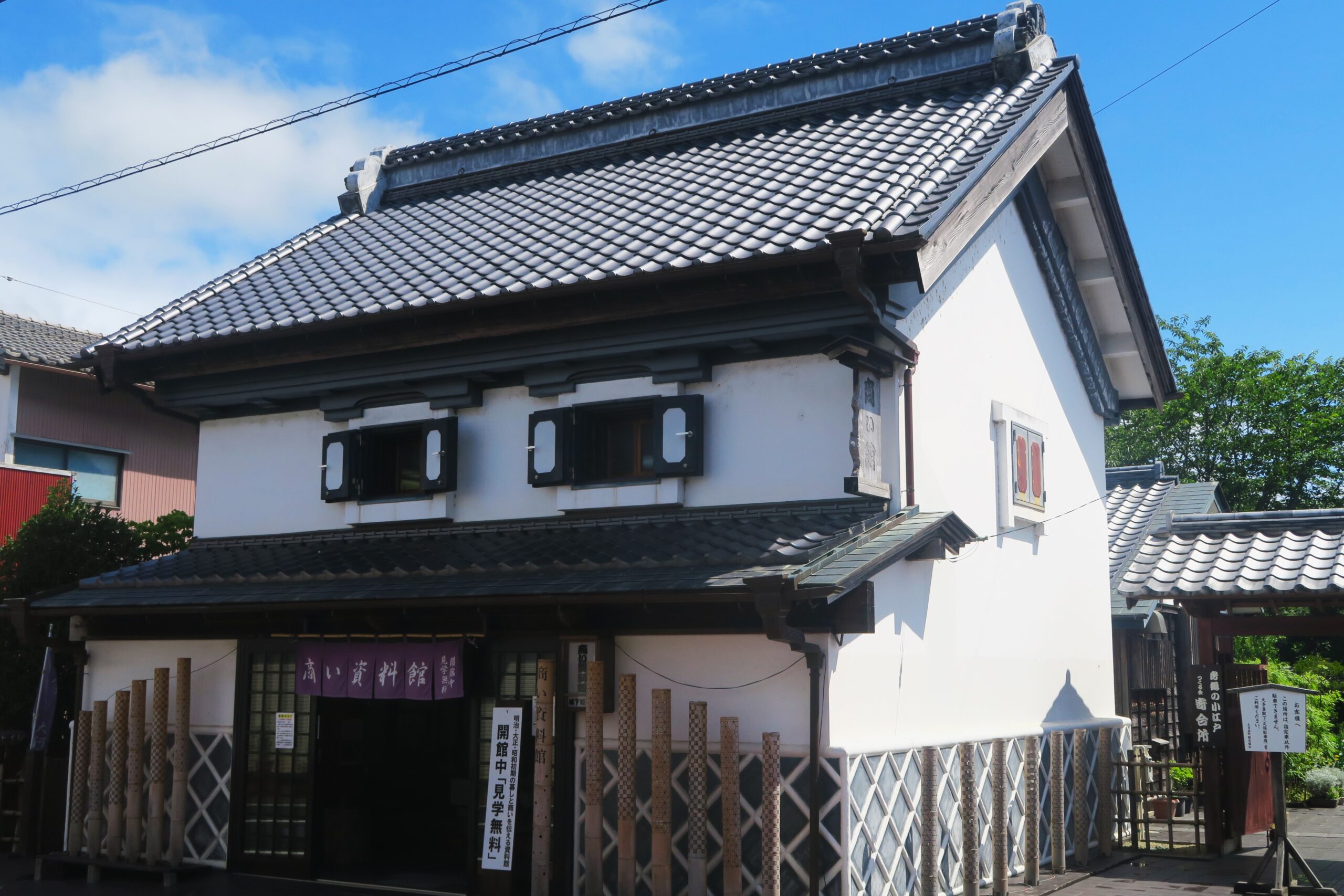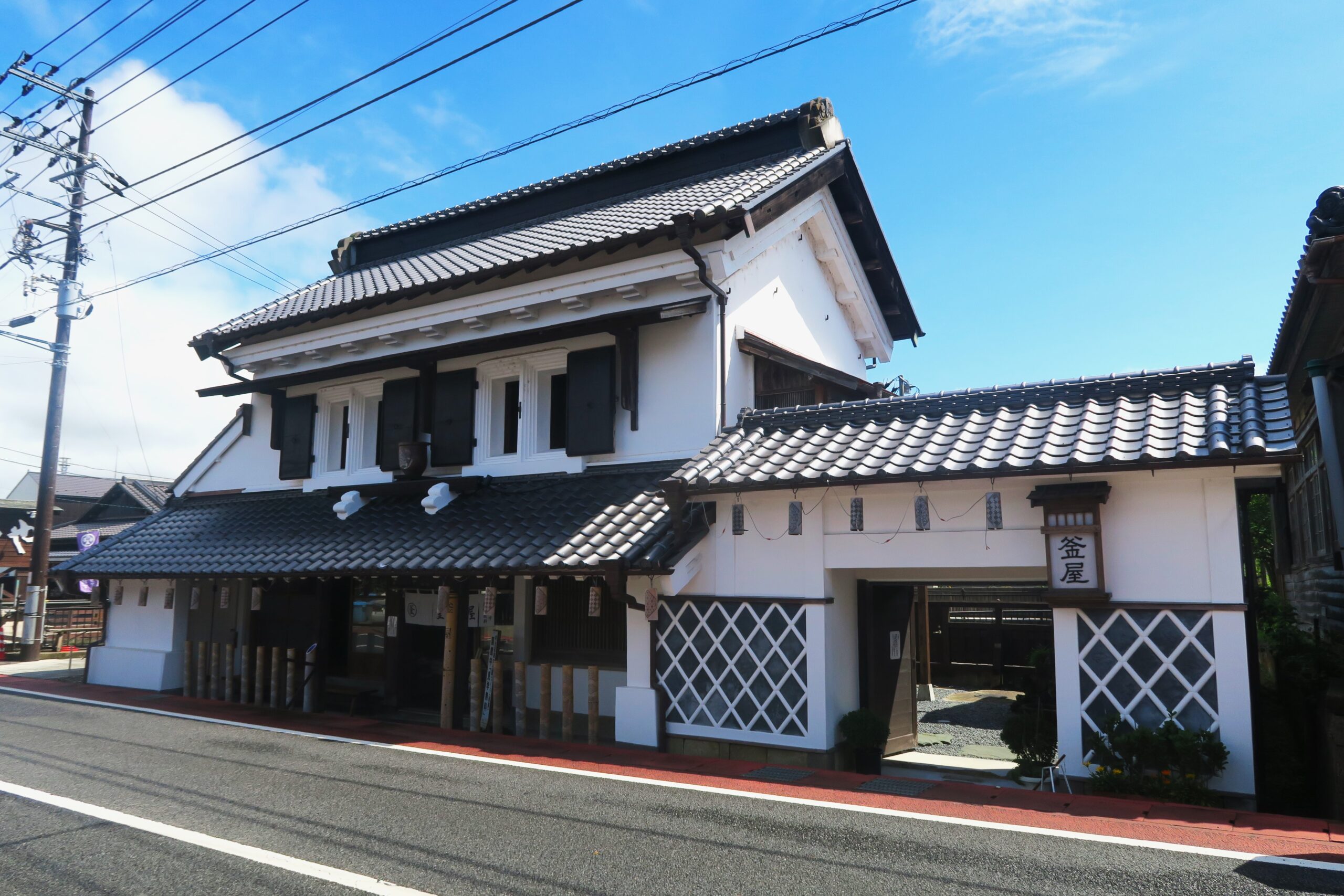 並びには明治9年(1876)建築の土蔵造りの商家で質屋・金物屋を営業していた釜屋(旧江澤邸)資料館があります。屋根瓦にどっしりとした構えの町屋で二階には重厚な観音開きの扉があります。