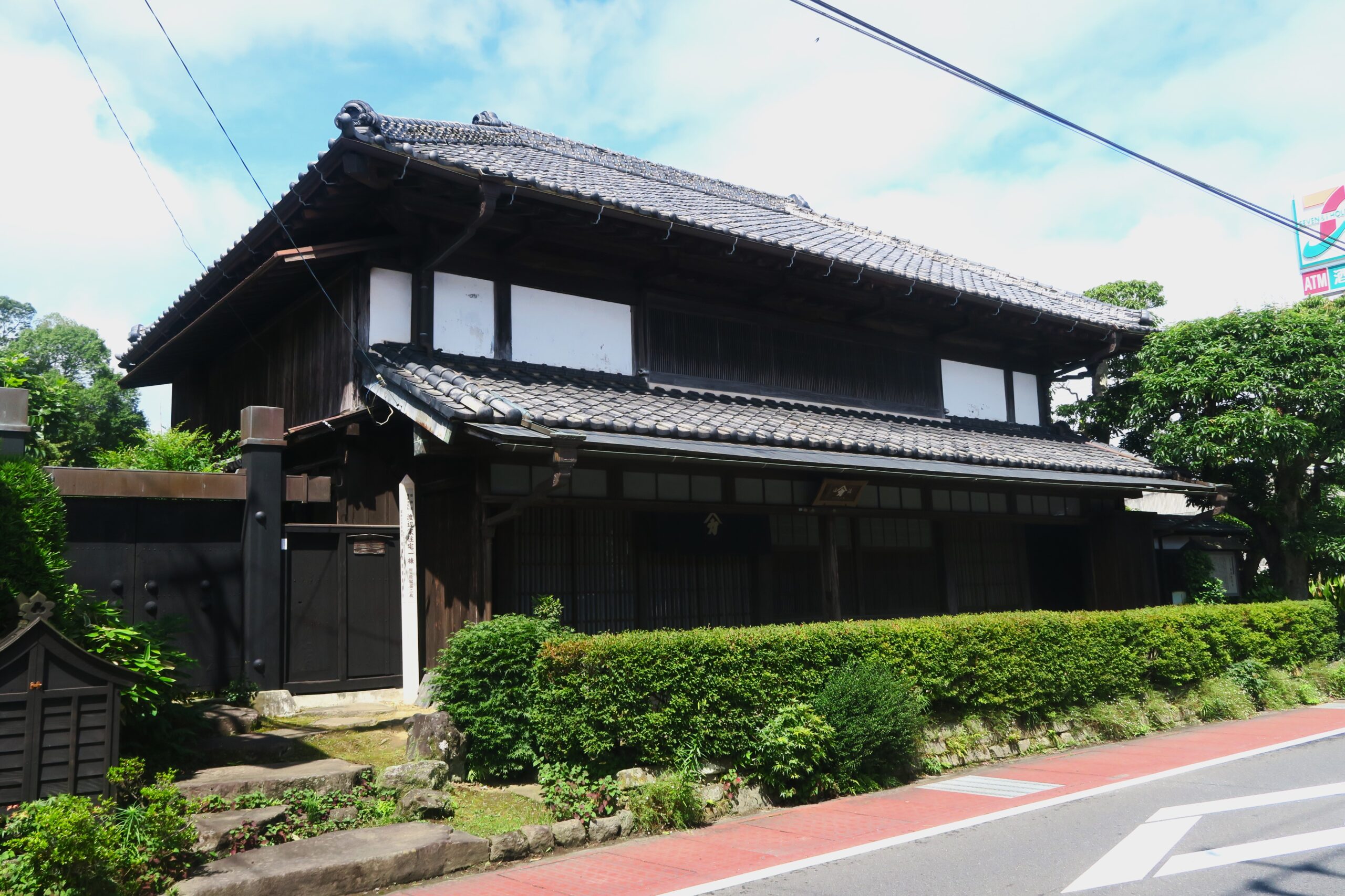 通りを進むと国指定の重要文化財で藩の御用金御用達商人を務めた渡辺家住宅があります。屋号は穀屋といい、嘉永2年(1849)地元の棟梁・佐治兵衛によって建造された江戸時代末期の代表的な商家造りで、寄棟棧瓦葺、二階建て、正面入り口は縦格子戸を、表板戸には上下戸をつけてあります。また小林一茶の句「松かぜに 寝て食う 六十四州かな」の短冊があります。テレビ東京「開運!なんでも鑑定団」の鑑定士、渡辺包夫氏の生家でもあります。