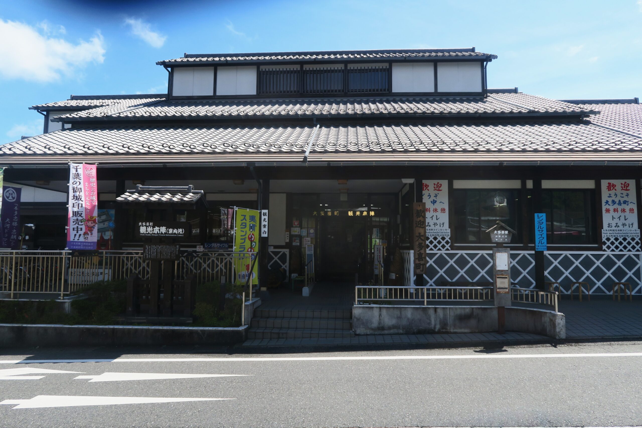 さらに城下町通りを直進すると5と10のつく日に開催される朝市、六斎市が開かれる「夷隅神社」とその参道入口に立つ江戸時代後期から旅籠として創業している「大黒旅館」が現れます。明治時代には学生だった正岡子規が宿泊したという説もあり、明治や大正時代などを舞台にしたドラマや映画の撮影にも時折使用されています。通称牛頭天王宮と呼ばれる夷隅神社は歴代大多喜城主の崇敬社のひとつで、創建は不詳ながら再建は1041年の平安時代、本多忠勝が城下町の整備に合わせてこの地に移したと伝わります。現在の建物は江戸時代末期のものと思われ、拝殿の外観は軒下を朱塗りとし、向拝に華やかな装飾が見られます。本殿内は簡素な造りで、中央奥にご神体が記された御鏡を祀る。