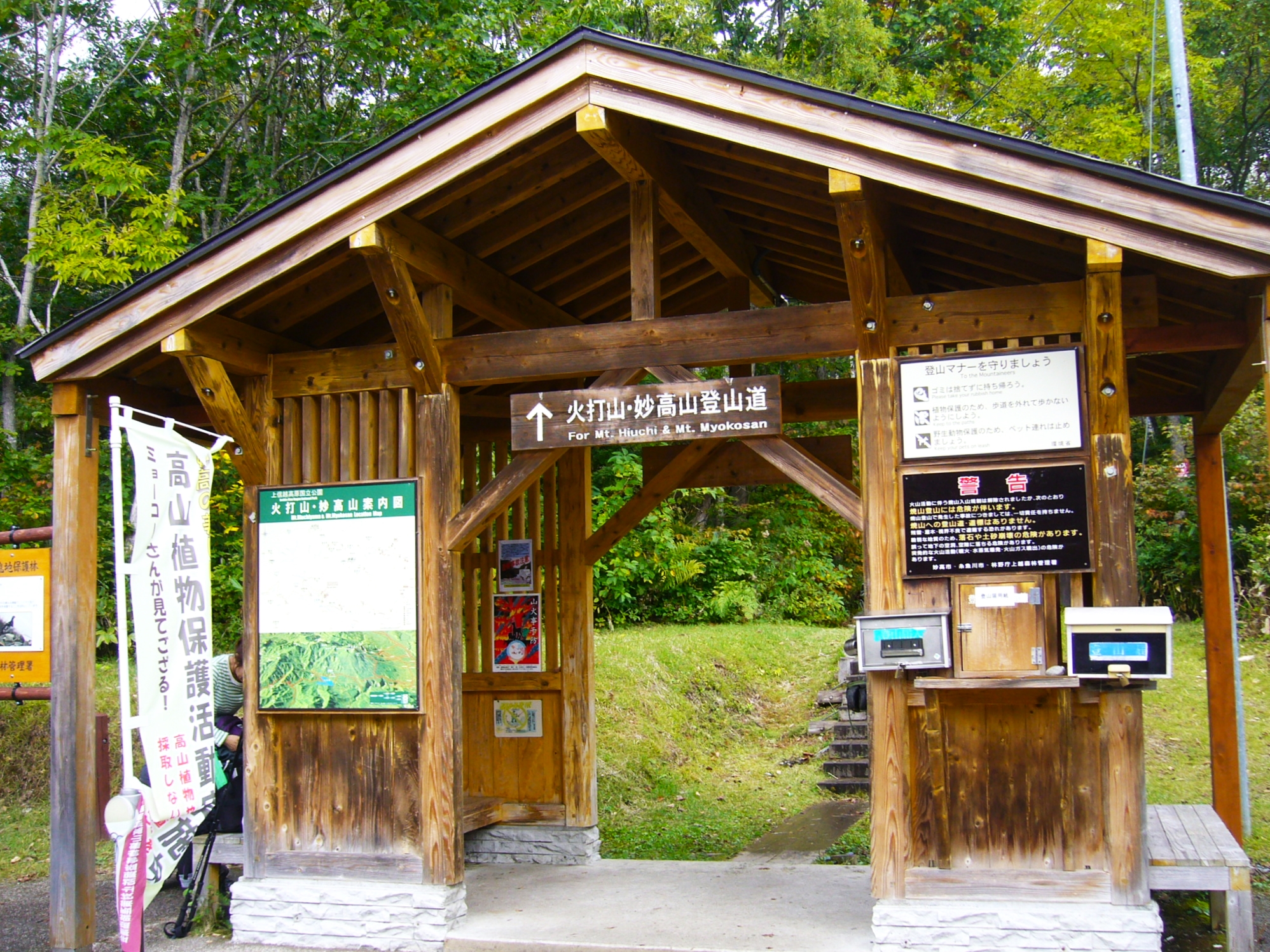 「火打山」は標高2462mの日本百名山のひとつでこの火打山登山口からたくさんの登山者が入山していきます。