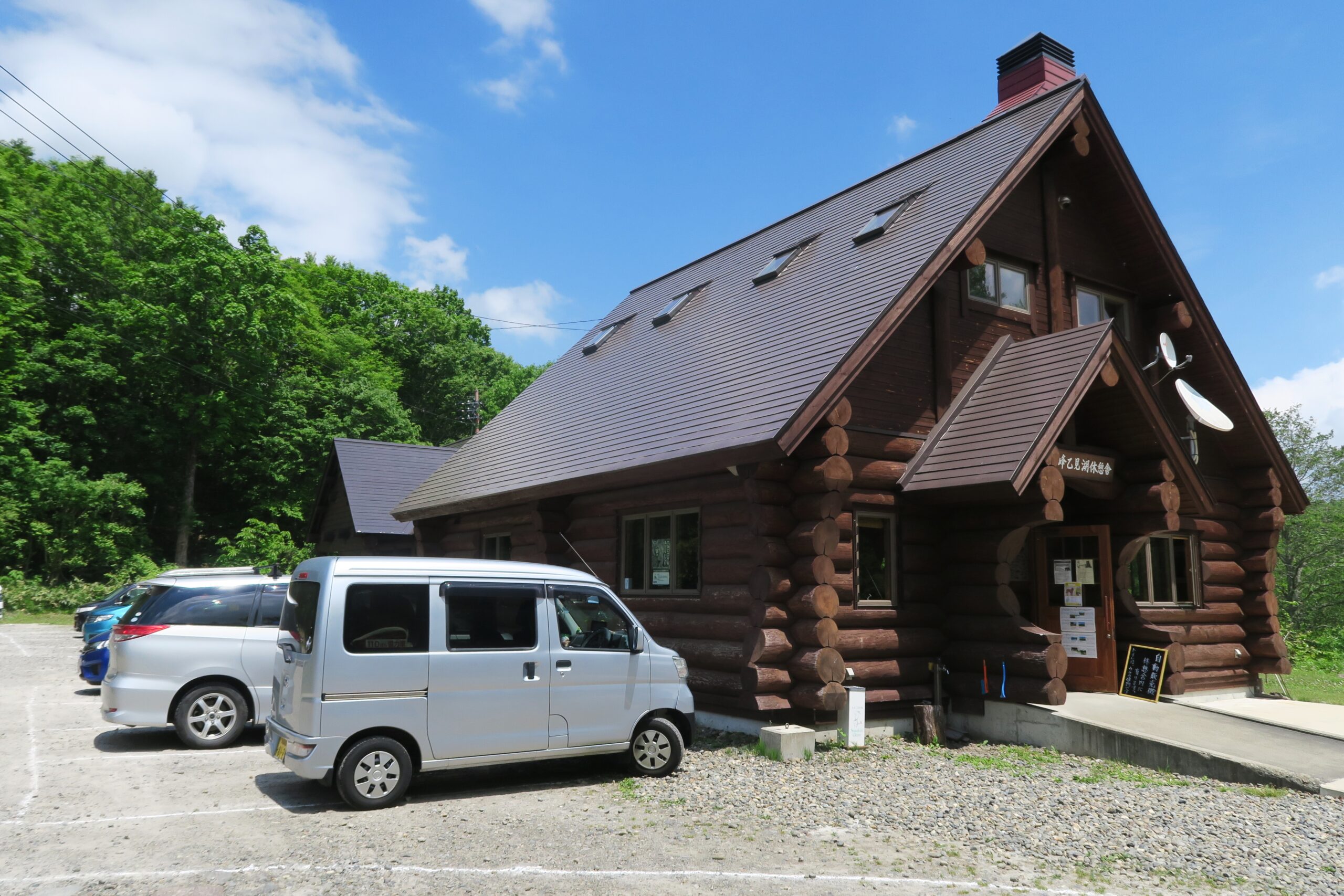 乙見湖のほとりにあるのが「乙見湖休憩所」です。ログハウス風の無料休憩所になっていて公衆トイレも併設されているので遊歩道散策の休憩地となります。ここが夢見平遊歩道のスタート、ゴール地点にもなっていますので駐車場もありますよ。