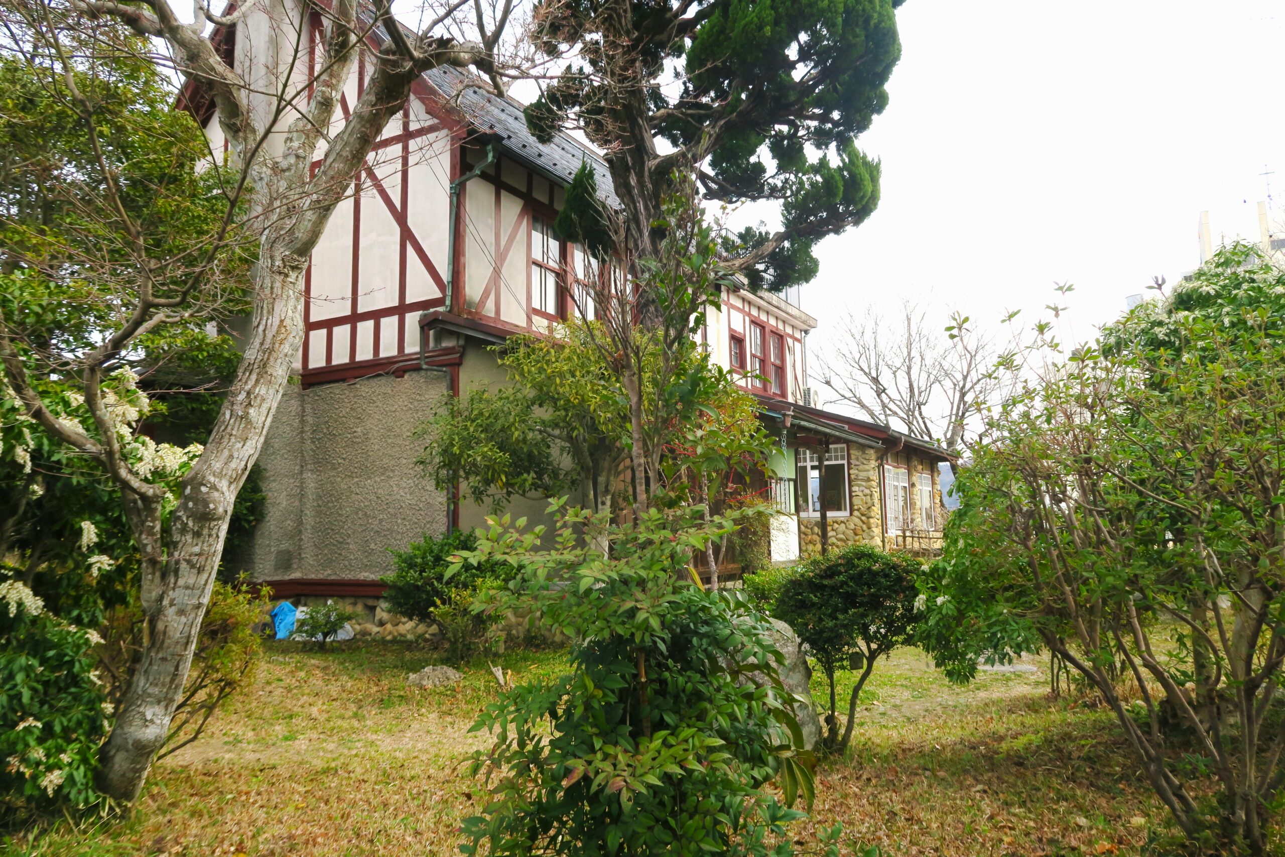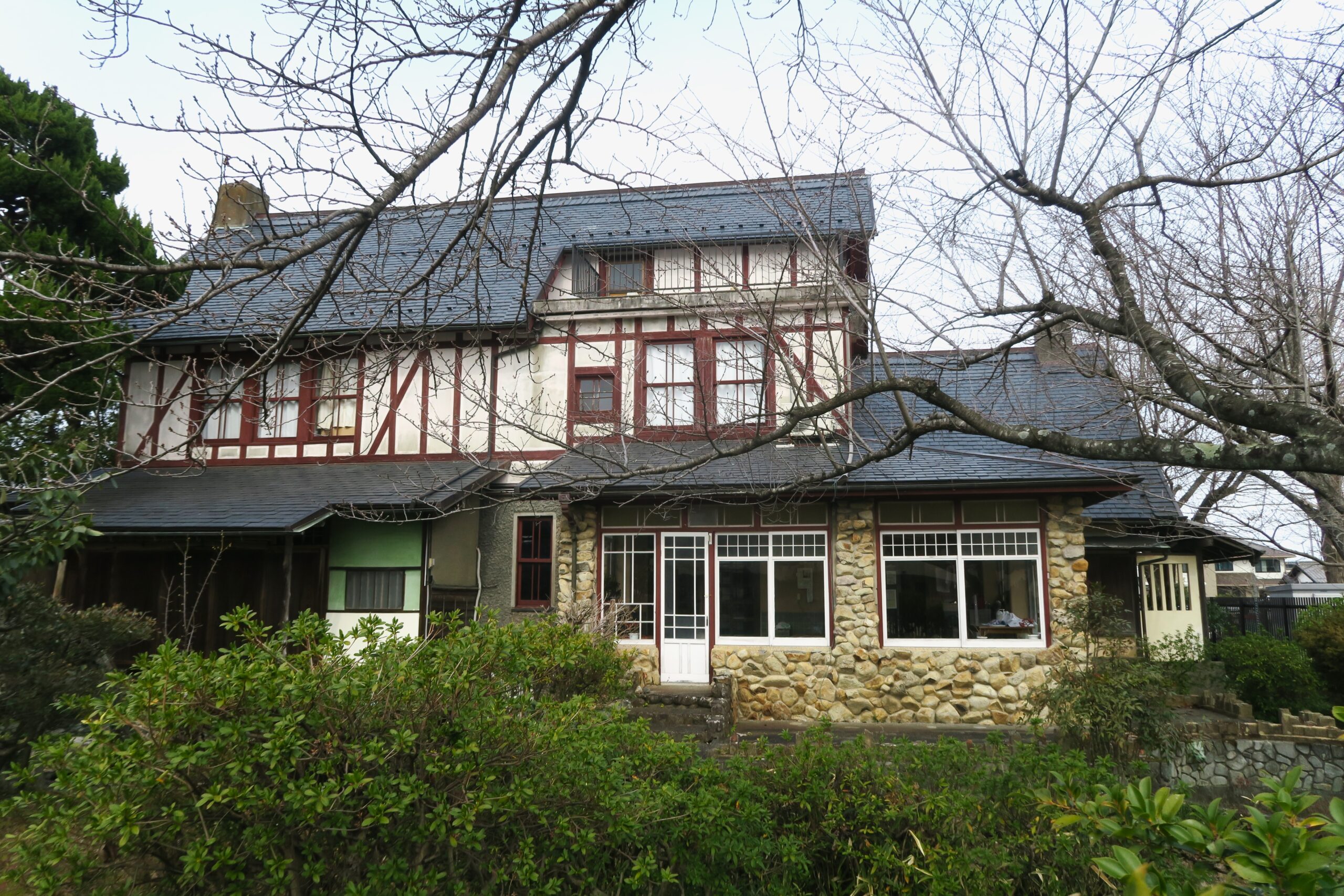 木造の地上3階建てで延床面積352.36㎡の建物で、主体部と玄関からなり、主体部は、ハーフティンバーと呼ばれる化粧梁で細分化された意匠の外壁に漆喰を施し、木部はベンガラを使用しています。傾斜の強い天然石スレート葺きの切妻屋根を乗せ、煙突を備えた洋風建築と入母屋造りで妻入淺瓦葺の和風玄関とで構成されています。