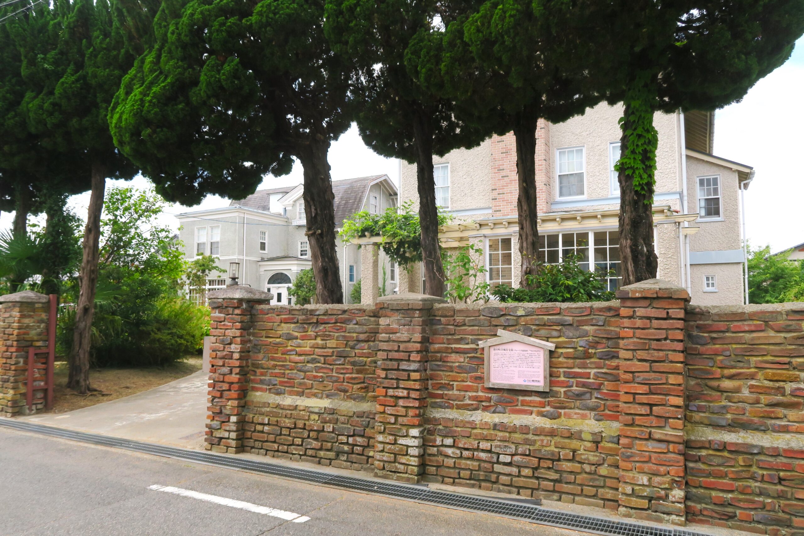 市立八幡小学校の北に赤レンガ塀が連なるレトロな池田町洋風住宅街(ヴォーリズ建築群)と呼ばれる一帯があります。大正期に手掛けた初期の作品で、アメリカ開拓時代を象徴するコロニアルスタイルと呼ばれる建物で、アメリカ式住宅のモデルハウスとして建てた「近江ミッション住宅群」です。左の建物はヴォーリズと働いた吉田悦蔵の住まいとして大正2年(1913)に建設。