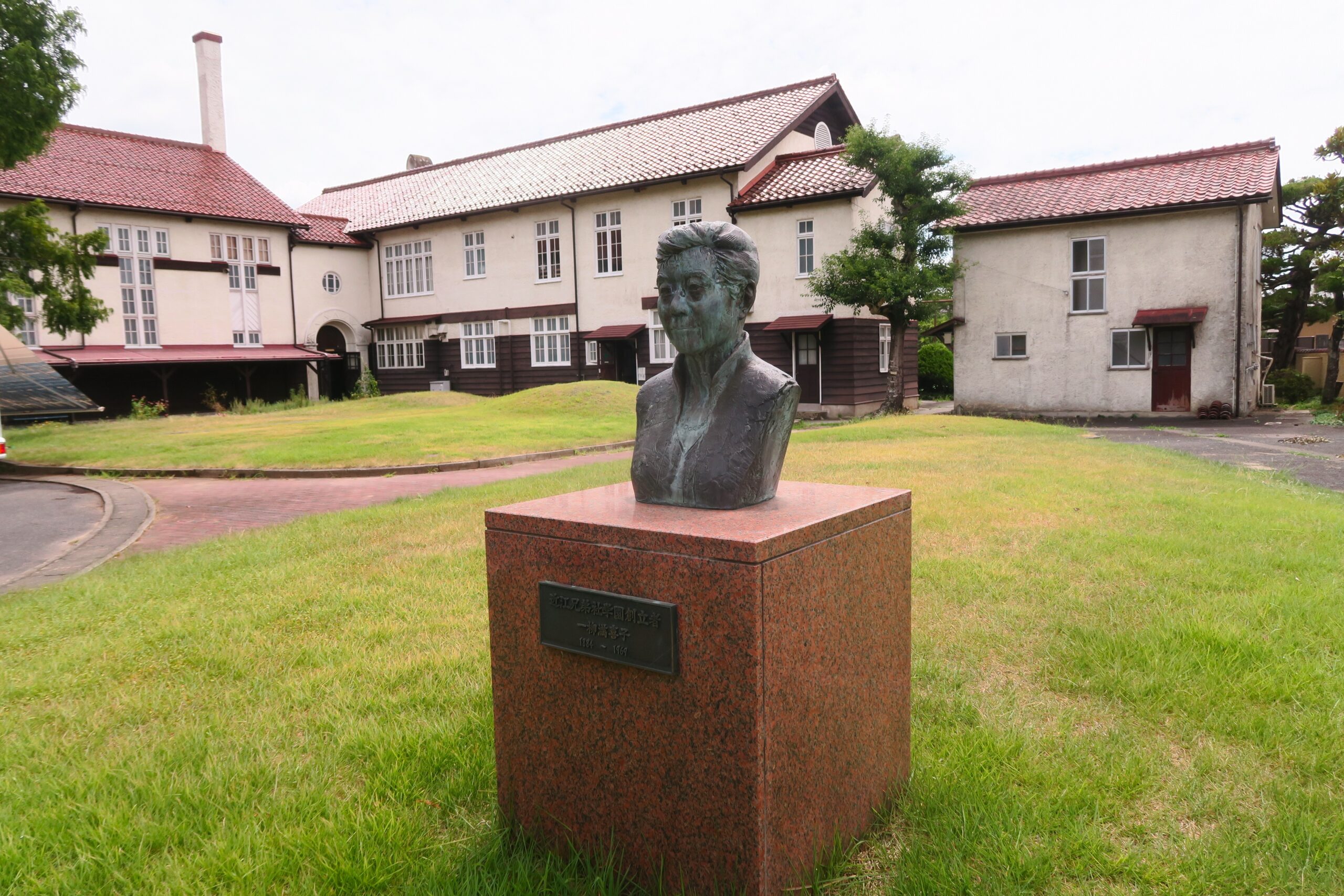 ハイド記念館はヴォーリズに共感したメンソレータム社の創始者ハイド氏の多額の寄付により建てられた2003年3月まで幼稚園舎「清友園」だった建物です。ヴォーリズ学園の敷地内にあり、記念館前にはヴォーリズ夫人で園長を務めた一柳満喜子像が立っています。外観はまるでヨーロッパの学校の寄宿舎のような素敵な建物で、建物をよくみればハイド記念館の窓枠にも十字架がデザインされ、自然光がたっぷり入る縦長の大きな窓が設けらえています。内部は緩やかで角を丸くした階段、保育室の暖炉など子どもたちへの配慮が感じられる工夫が随所に施されています。