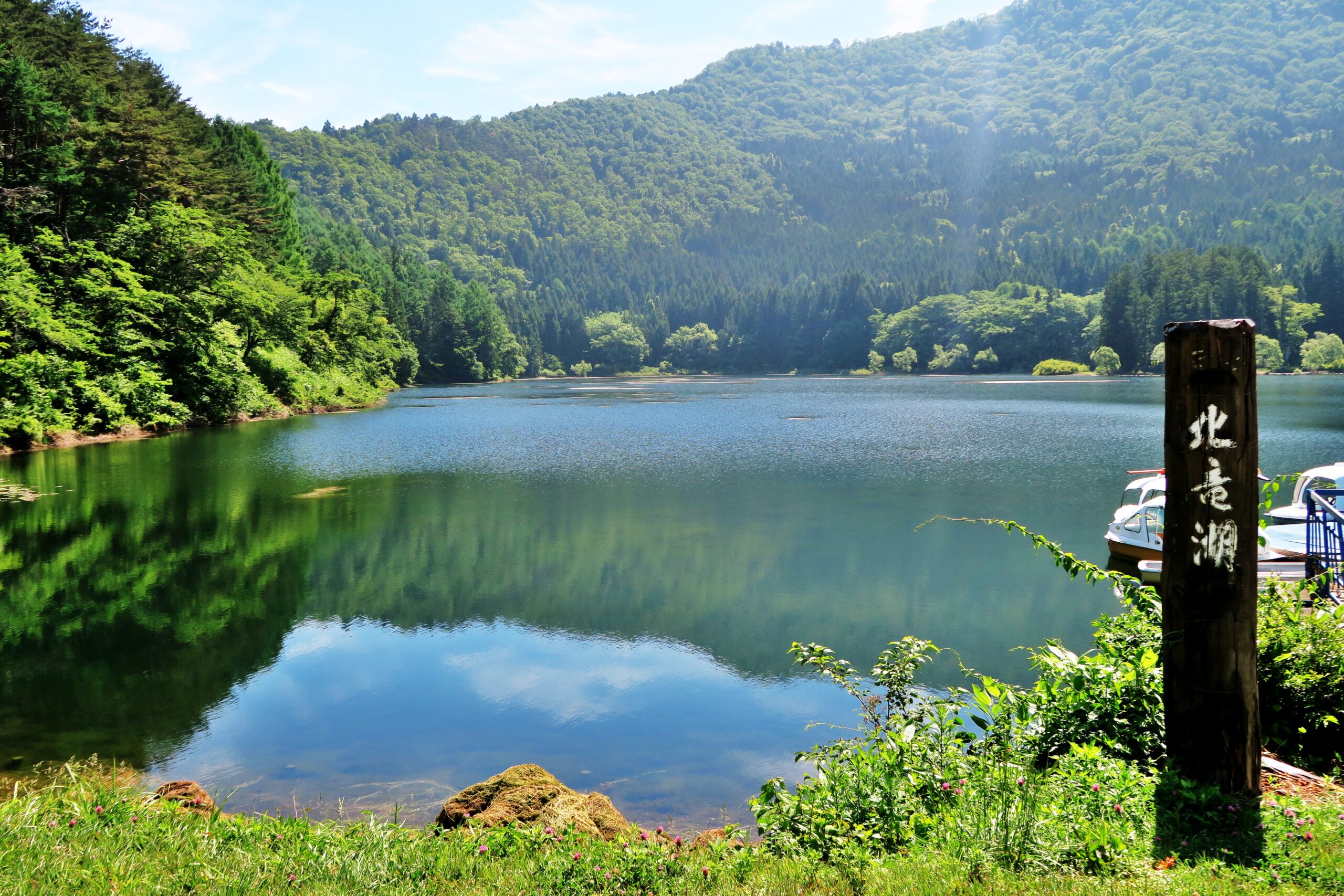 ということで続いて飯山市『神の森』北竜湖周遊の道を歩くために北竜湖を目指します。飯山の深い山を背景にひっそり佇む見事なハート型の神秘な湖が「北竜湖」です。古くは早乙女たちが手を洗う場所であるとして早乙女池と呼ばれていました。天明3年(1783)に浅間山が噴火した際の天明の大地震による決壊が堤防強化の契機となった。弘化4年(1847)には善光寺地震により湖の西部から水があふれ、湖の主といわれた大蛇が住民100人分の命を飲み込み、竜に姿を変え千曲川に流れ下ったといいます。明治の始め、堤防が築かれ湖の規模が現在の姿に拡大、北竜池という名称が付けられました。現在はその姿が失われてしまったが、かつては南に南竜湖という湖があり、オス・メスの竜が南北それぞれの池に住むといわれていい、昭和36年(1961)、北竜湖へと改名されました。